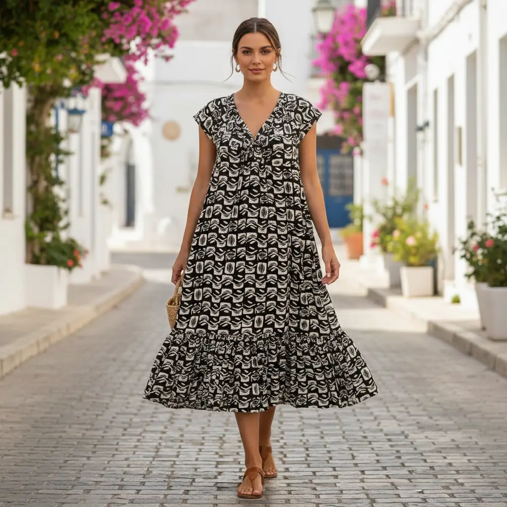 Tessuto Viscosa a fantasia dalla mano morbida e fluente ideale per realizzare capi freschi e comodi da utilizzare nella stagione Primavera-Estate.