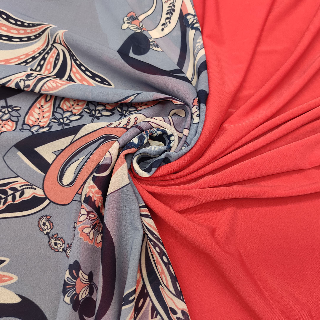 Tessuto Georgette a fantasia abbinato a Tessuto jersey leggero corallo