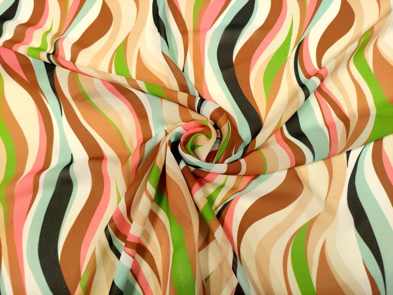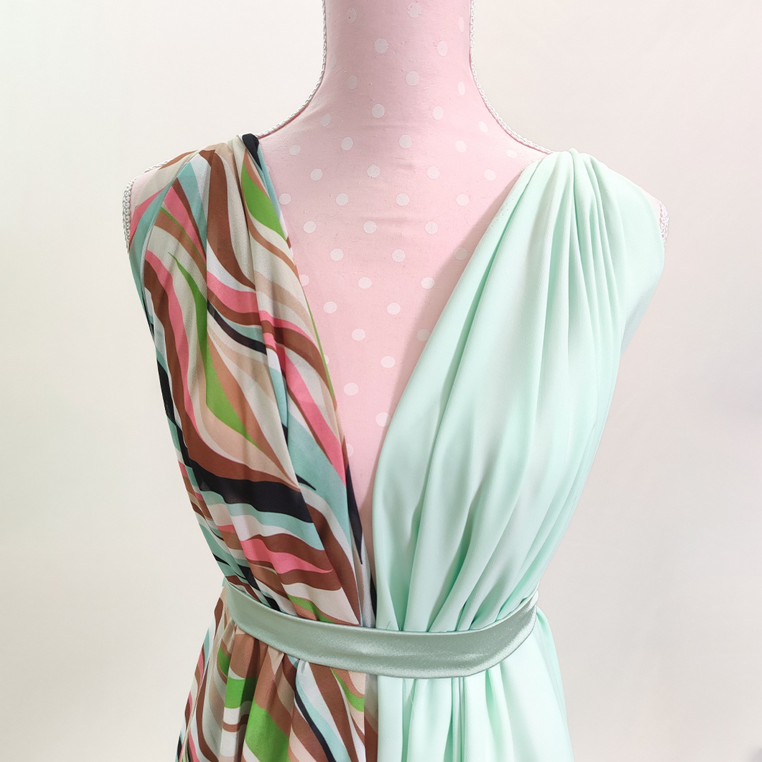 Tessuto Georgette a fantasia motivo astratto abbinato a tessuto crepe tinta unita.