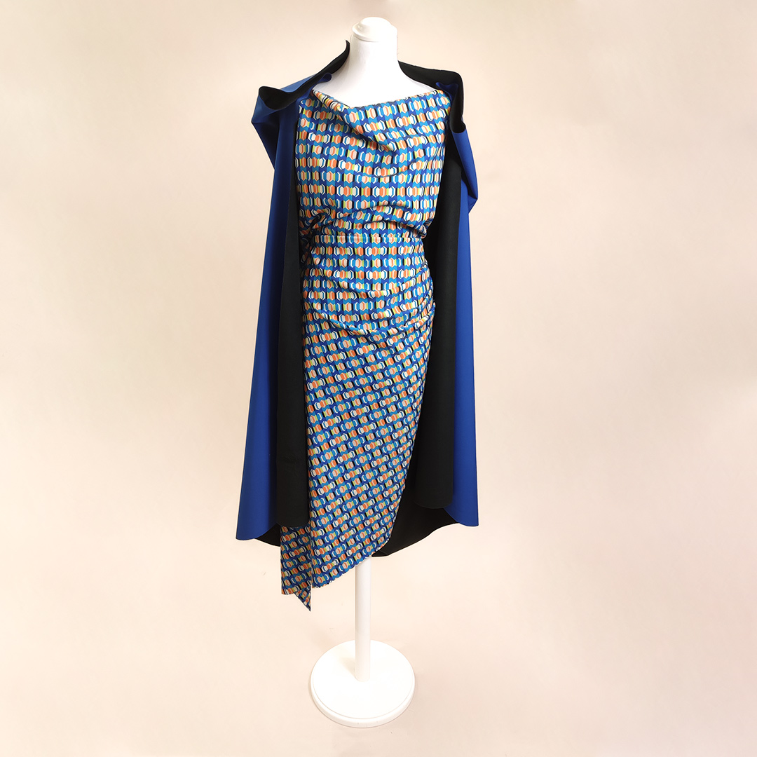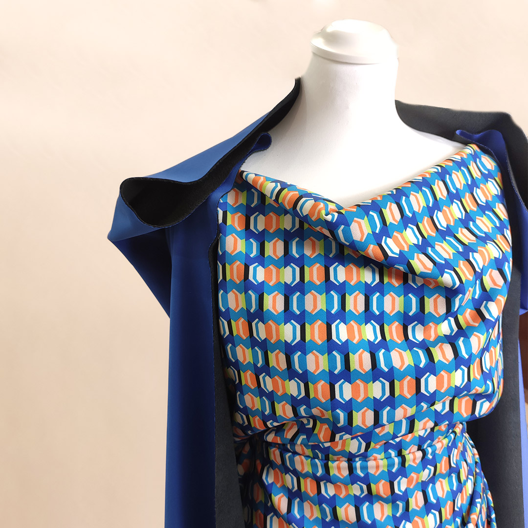 Tessuto Neoprene doppiato abbinato a tessuto Cady Elasticizzato a fantasia