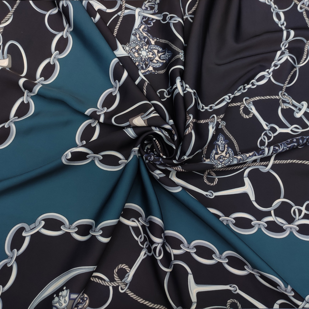 Tessuto Satin a fantasia abbinato a tessuto Jeans Chambray
