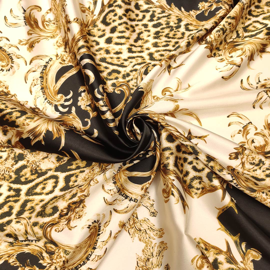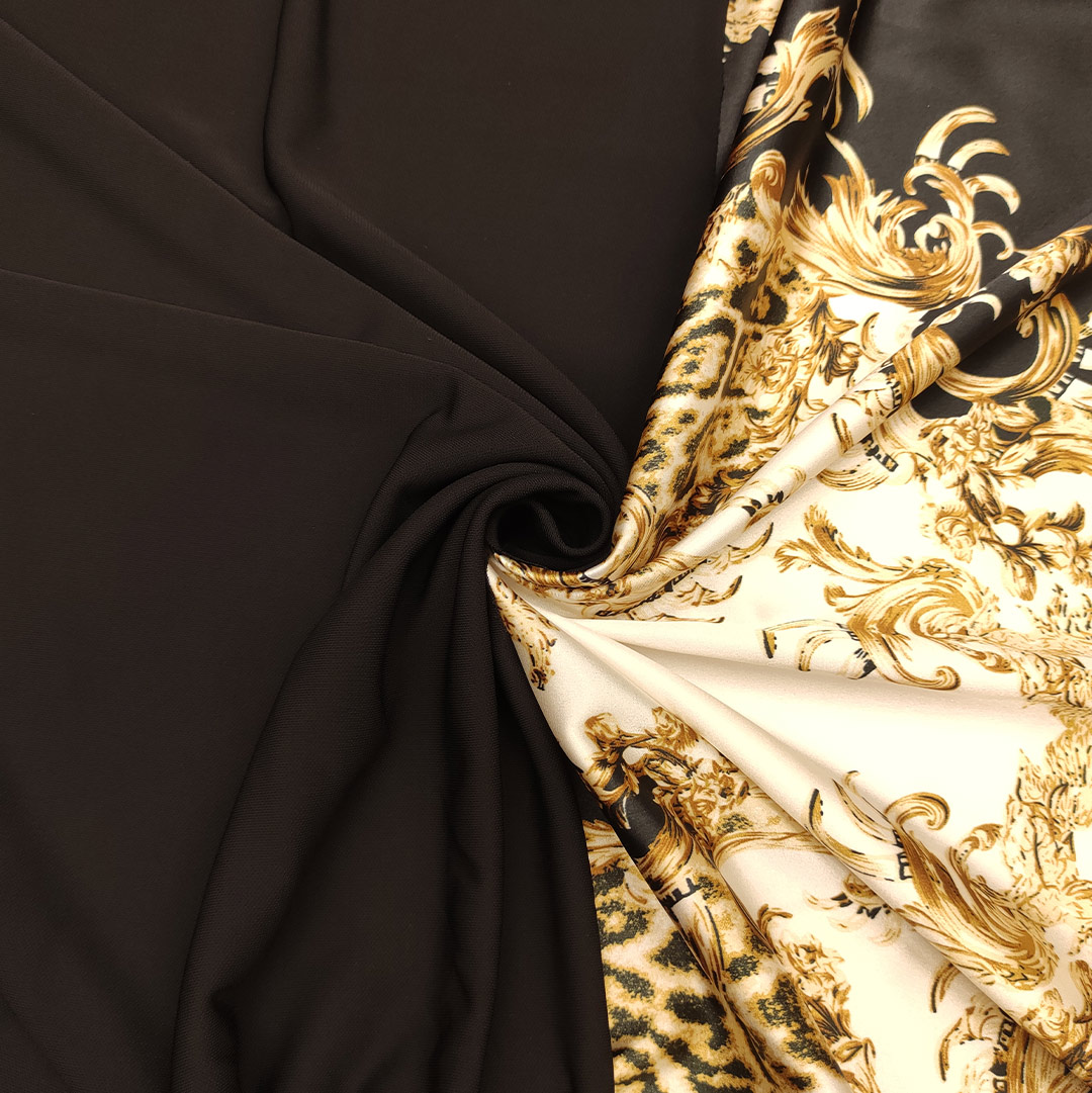 Tessuto Satin a fantasia abbinato a tessuto jersey leggero in tinta unita