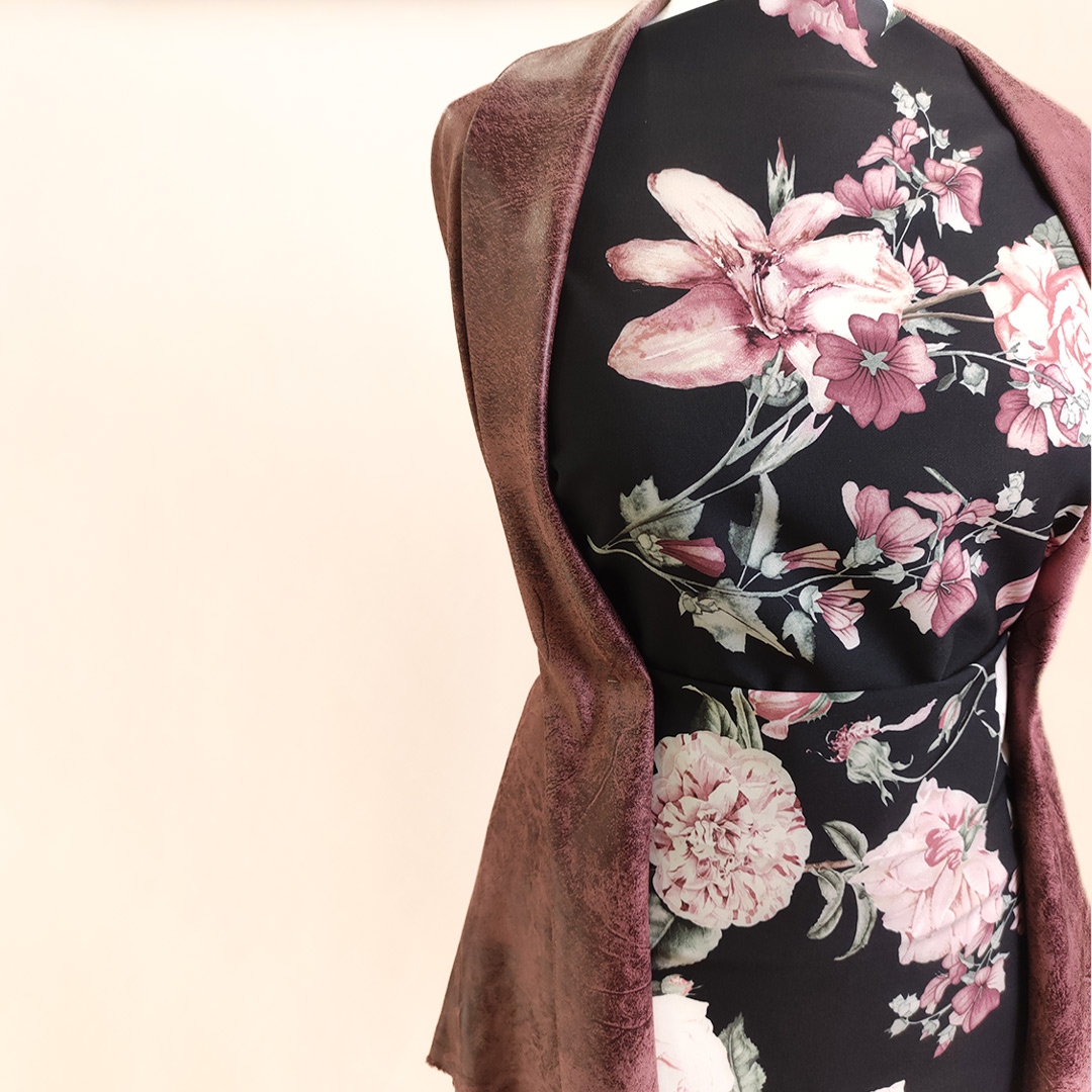 Tessuto Simil Dainetto effetto invecchiato abbinato a Cady elasticizzato a fantasia