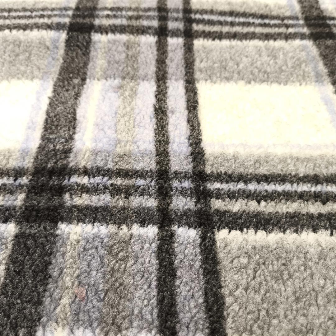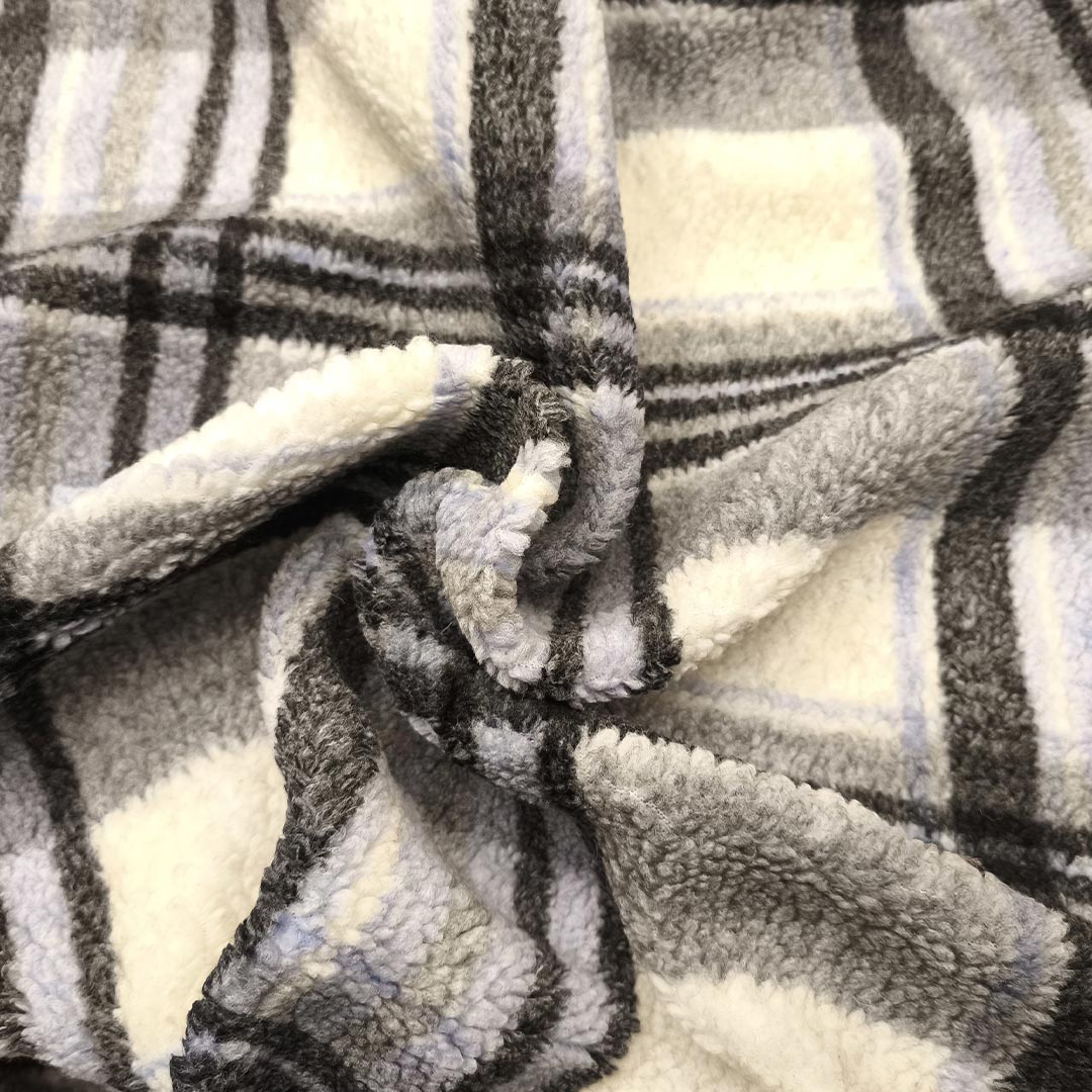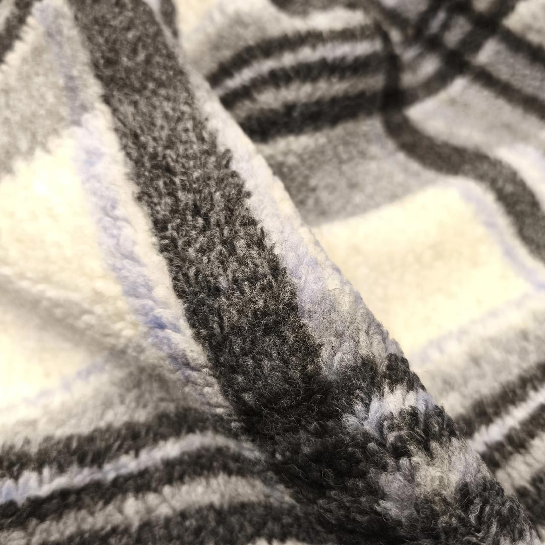 Scampolo di Tessuto Lana Cotta motivo quadri celeste – bianco – nero