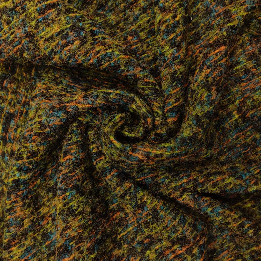 Taglio di Tessuto Lana Cotta motivo tweed arancio – nero – verde acido