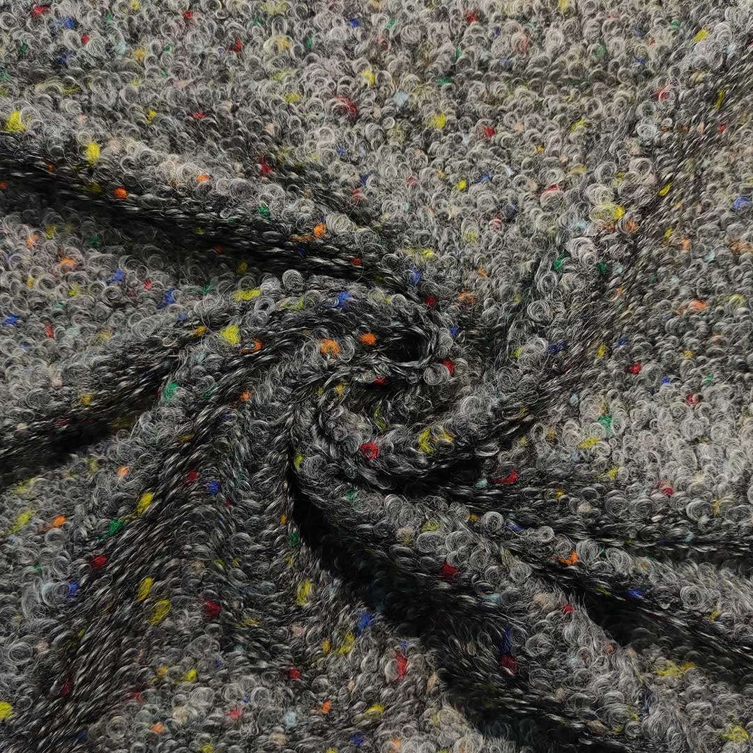 Tessuto Lana Cotta bouclè grigio – blu elettrico – verde acido