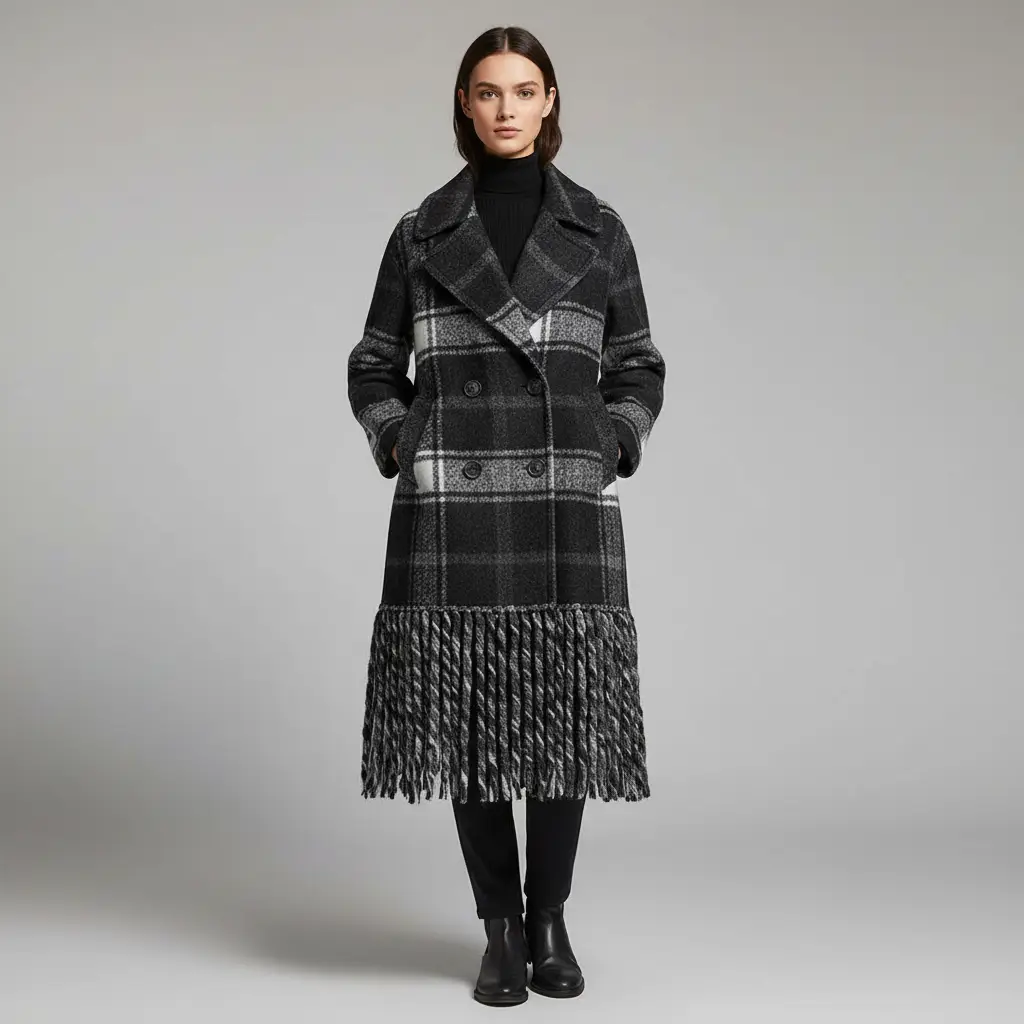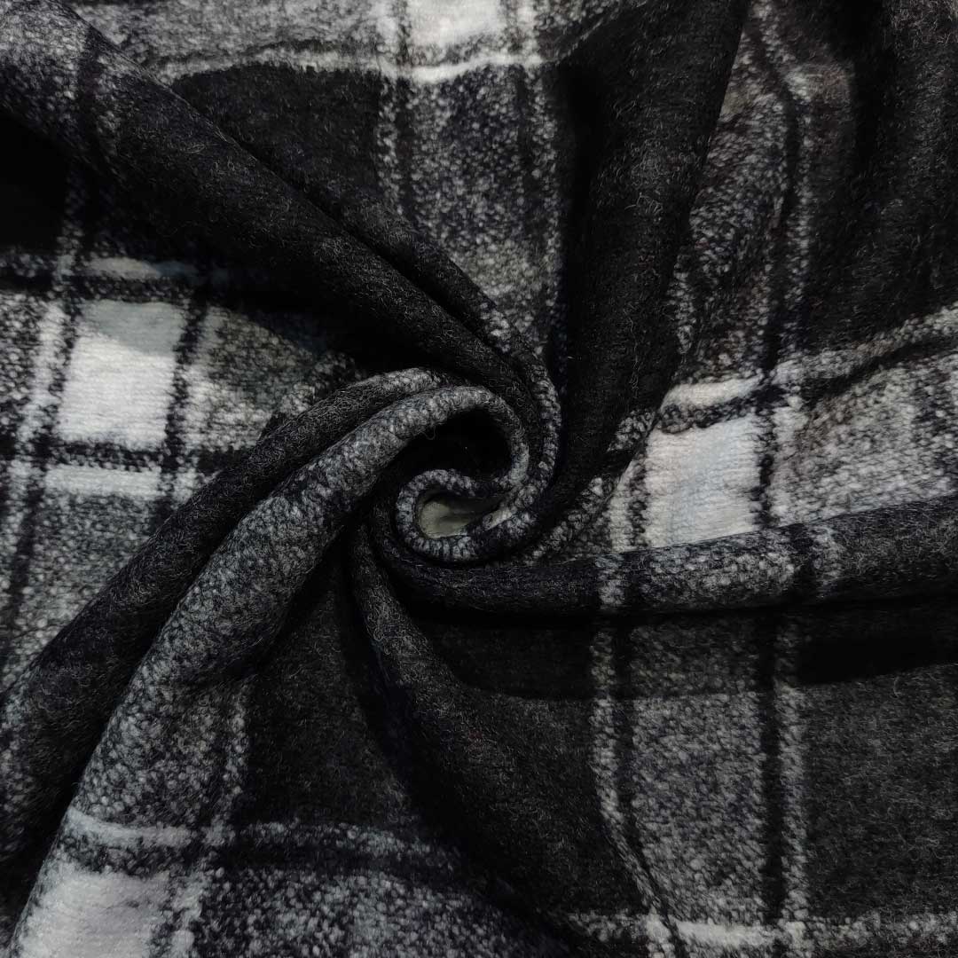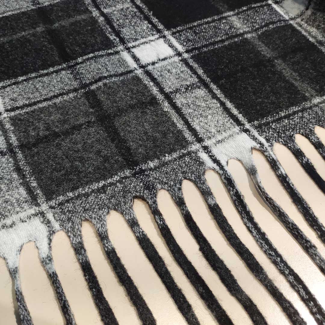Tessuto Lana Cotta con frange al bordo motivo quadri grigio – nero