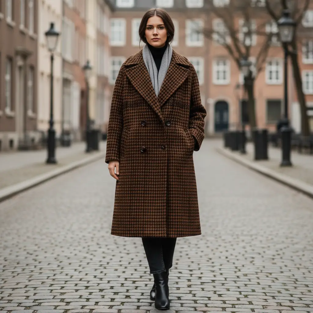 Tessuto lana cotta motivo quadri marrone – nero
