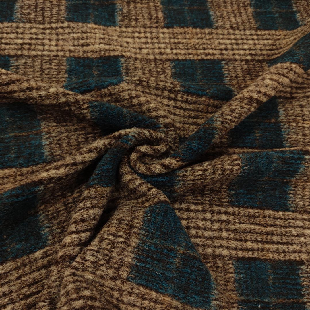 Tessuto Lana Cotta motivo quadri verde ottanio – beige