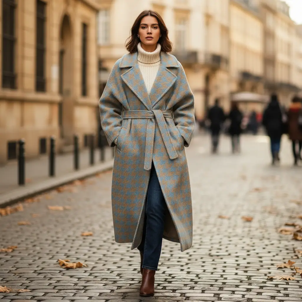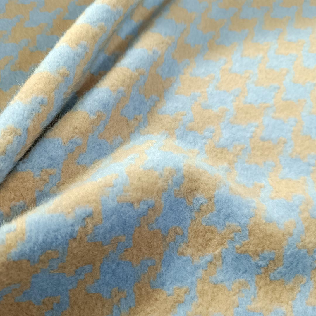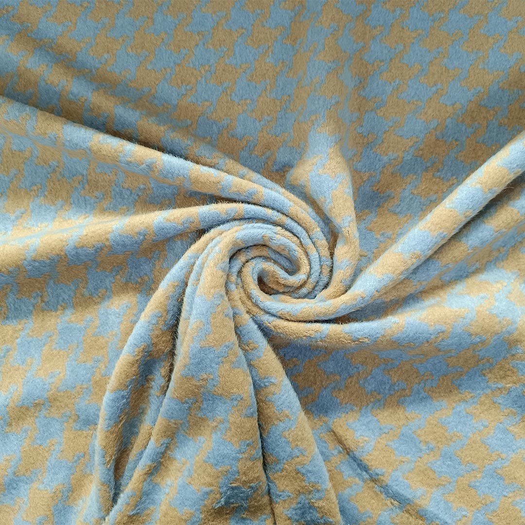 Tessuto per cappotto motivo pied de poule beige – celeste