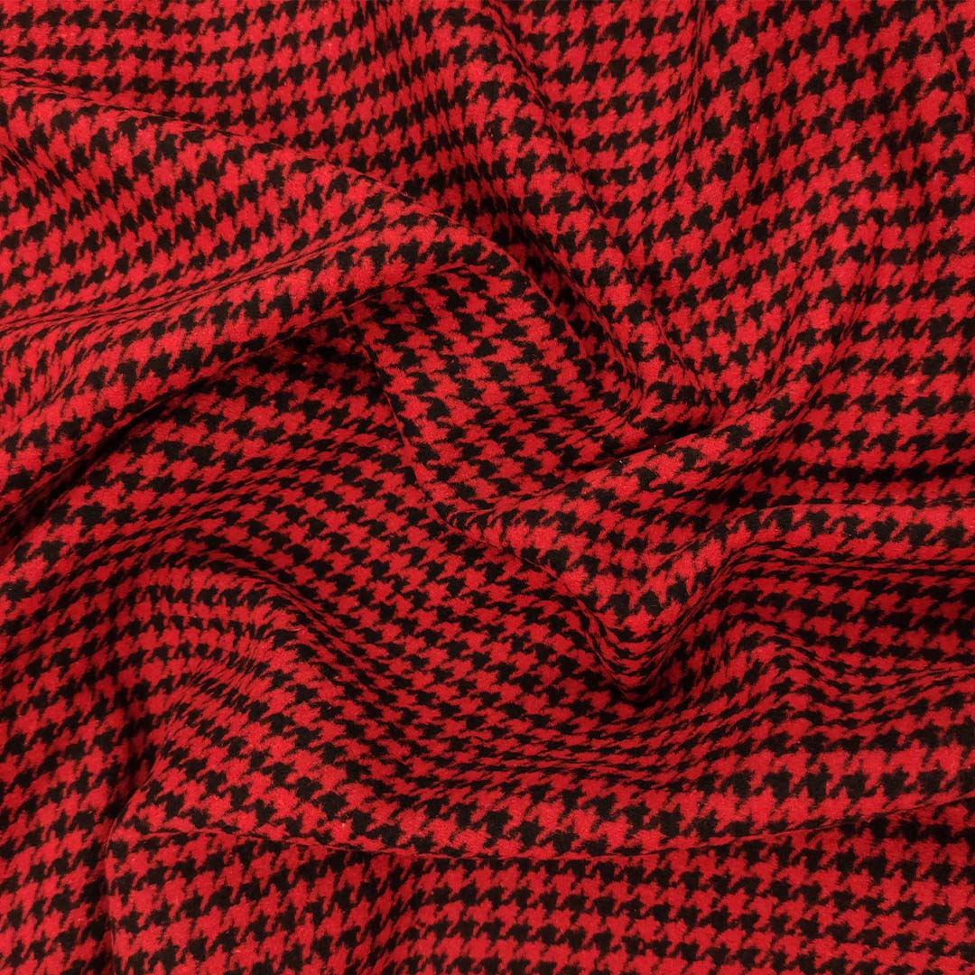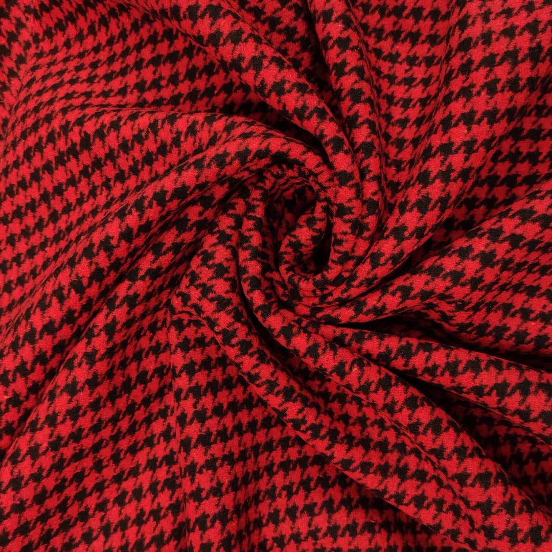 Tessuto per cappotto motivo pied de poule rosso – nero