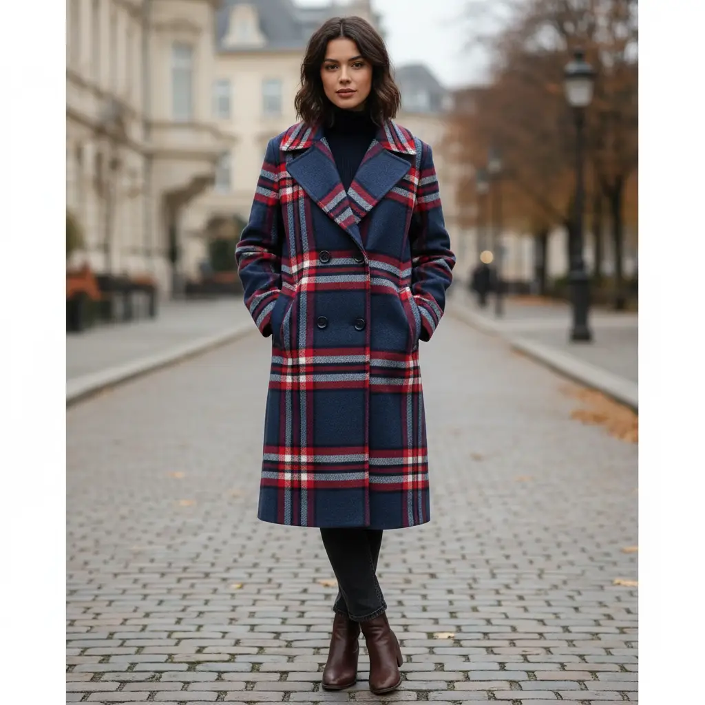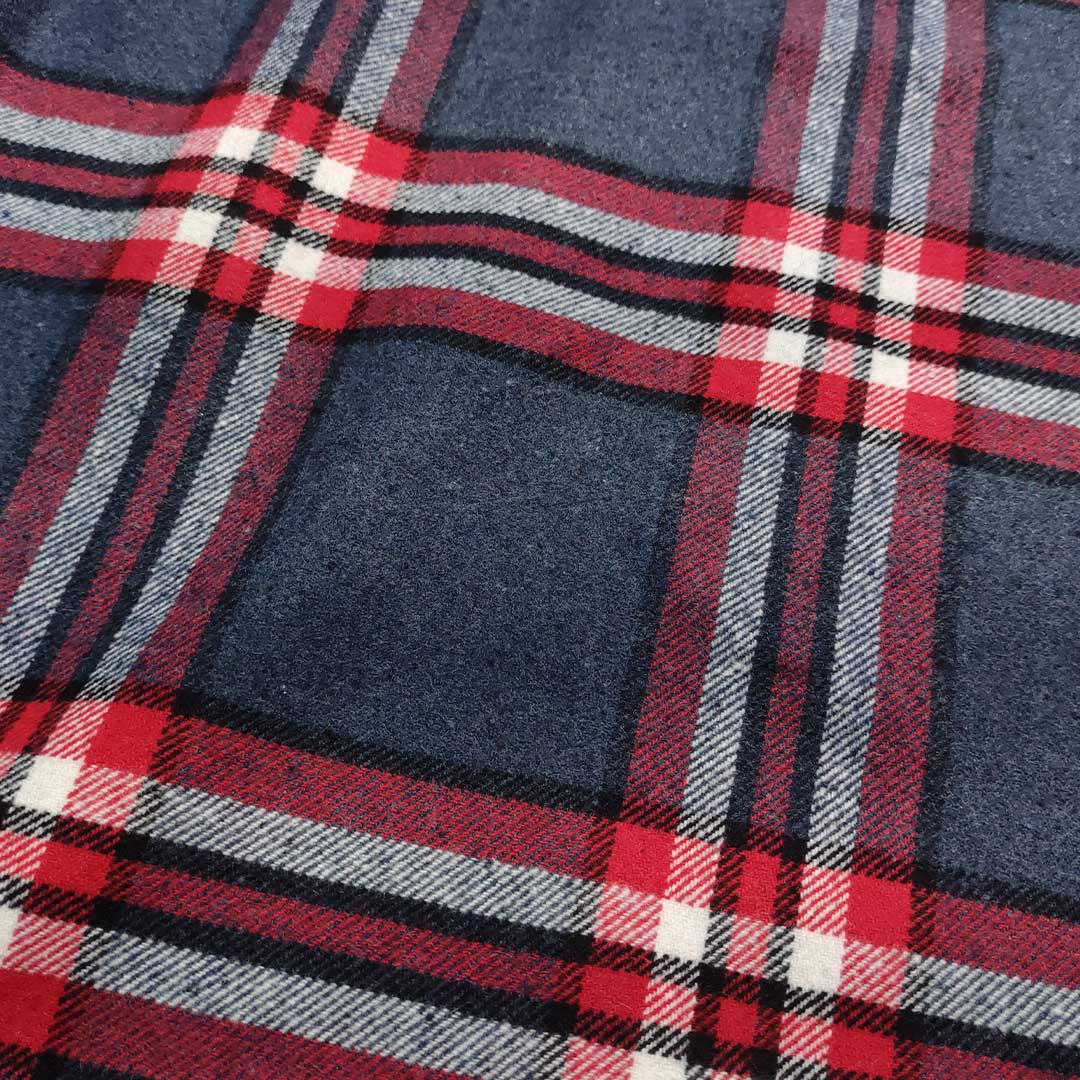 Tessuto per cappotto motivo quadri avio – rosso – bianco