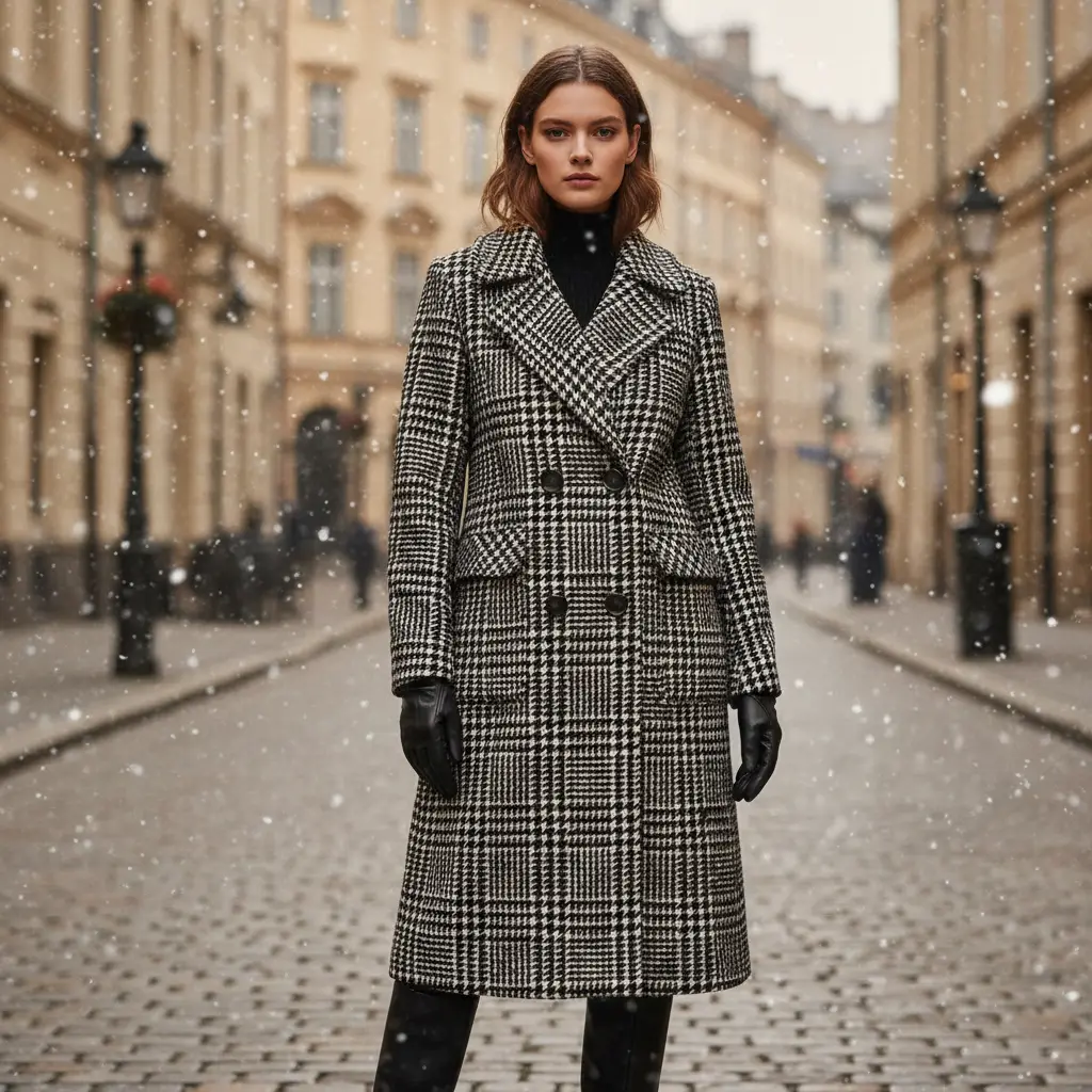 Tessuto per cappotto motivo quadri bianco – nero – argento