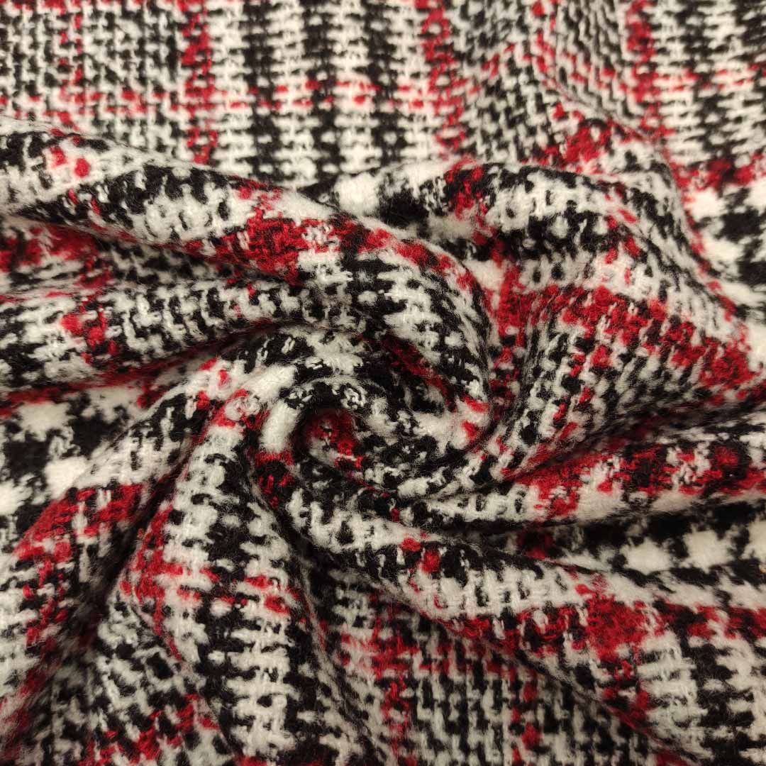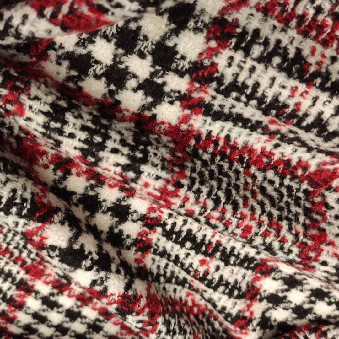 Tessuto per cappotto motivo quadri bianco – nero – rosso