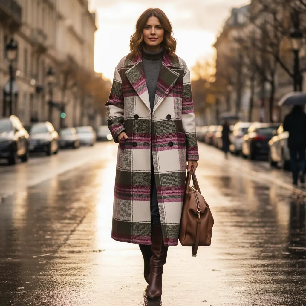 Tessuto per cappotto motivo quadri bianco – verde militare – magenta