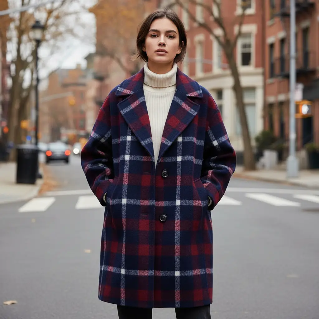 Tessuto per cappotto motivo quadri blu – bordeaux – bianco
