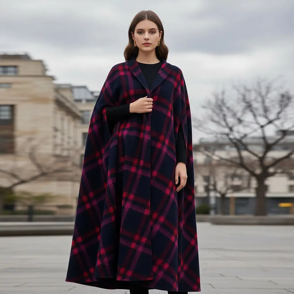 Tessuto per cappotto motivo quadri blu – rosso – fucsia