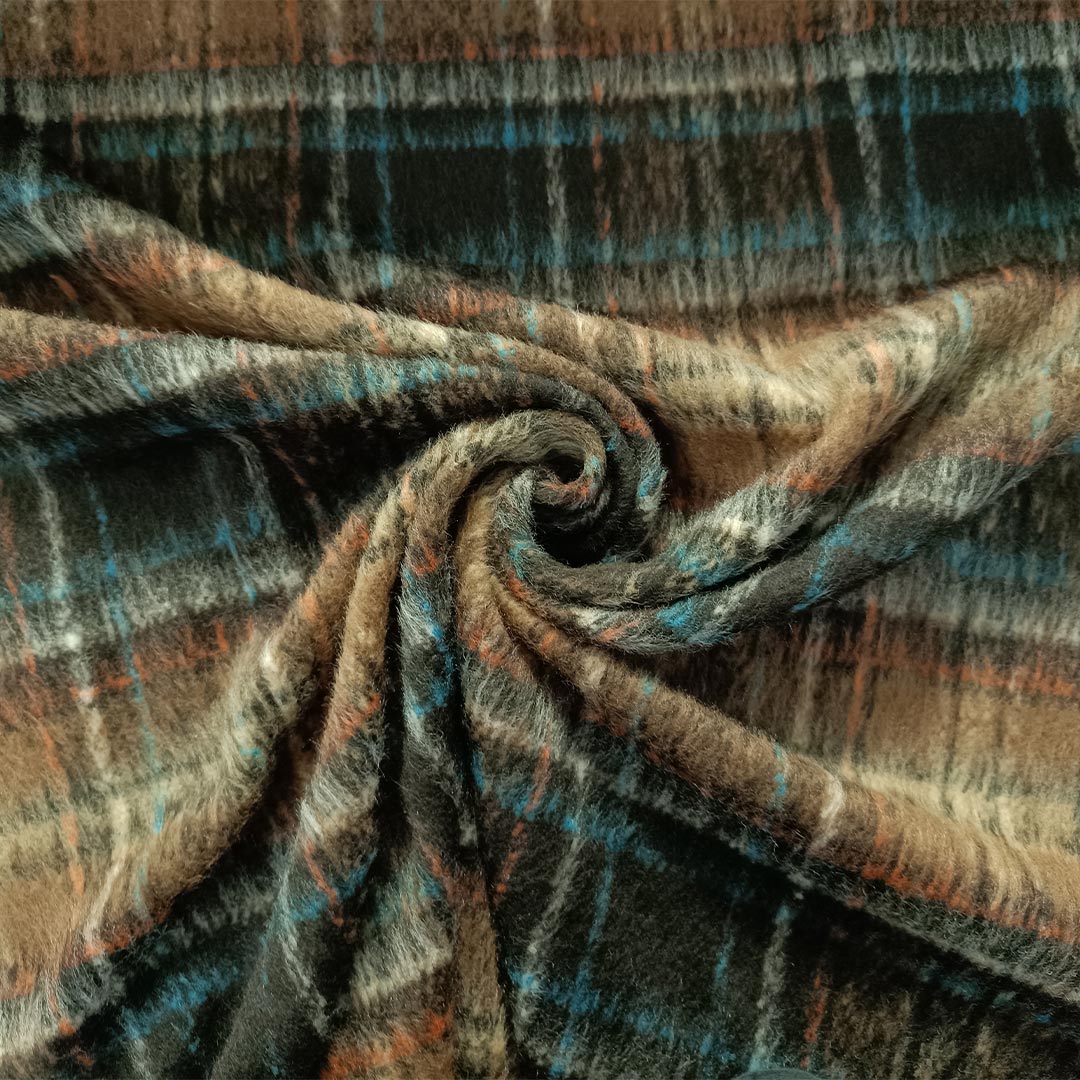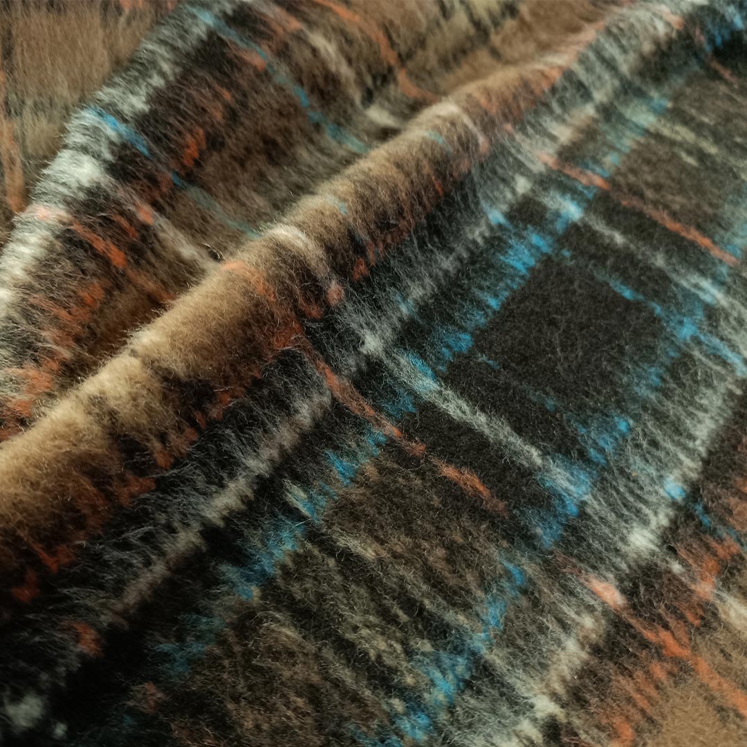 Tessuto per cappotto motivo quadri marrone – celeste – arancione