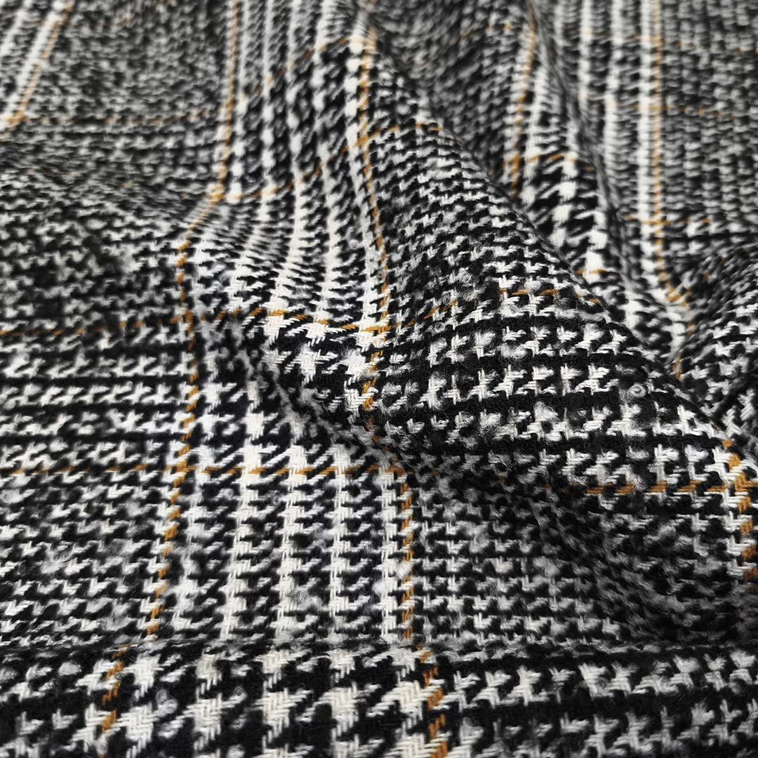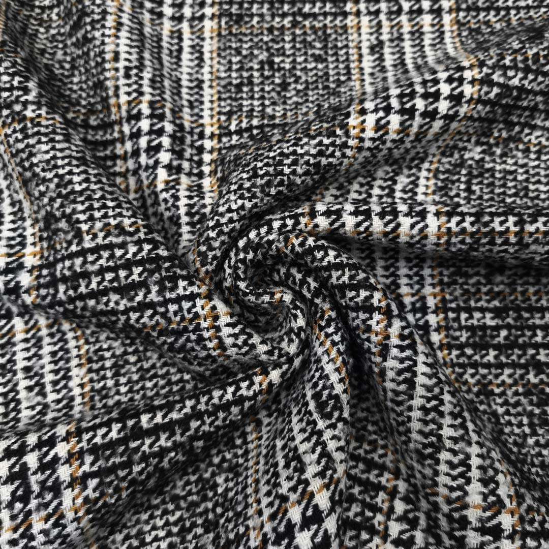 Tessuto per cappotto motivo quadri panna – nero – ruggine