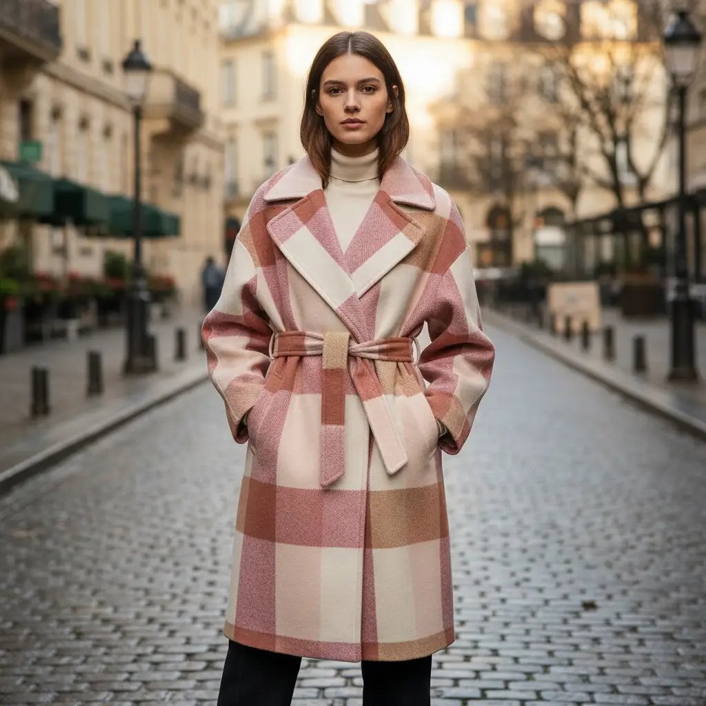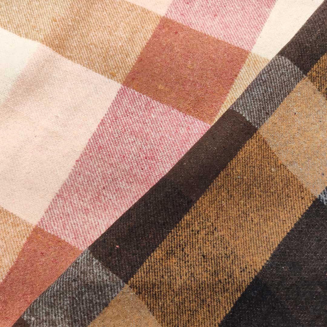 Tessuto per cappotto motivo quadri panna – rosa – geranio