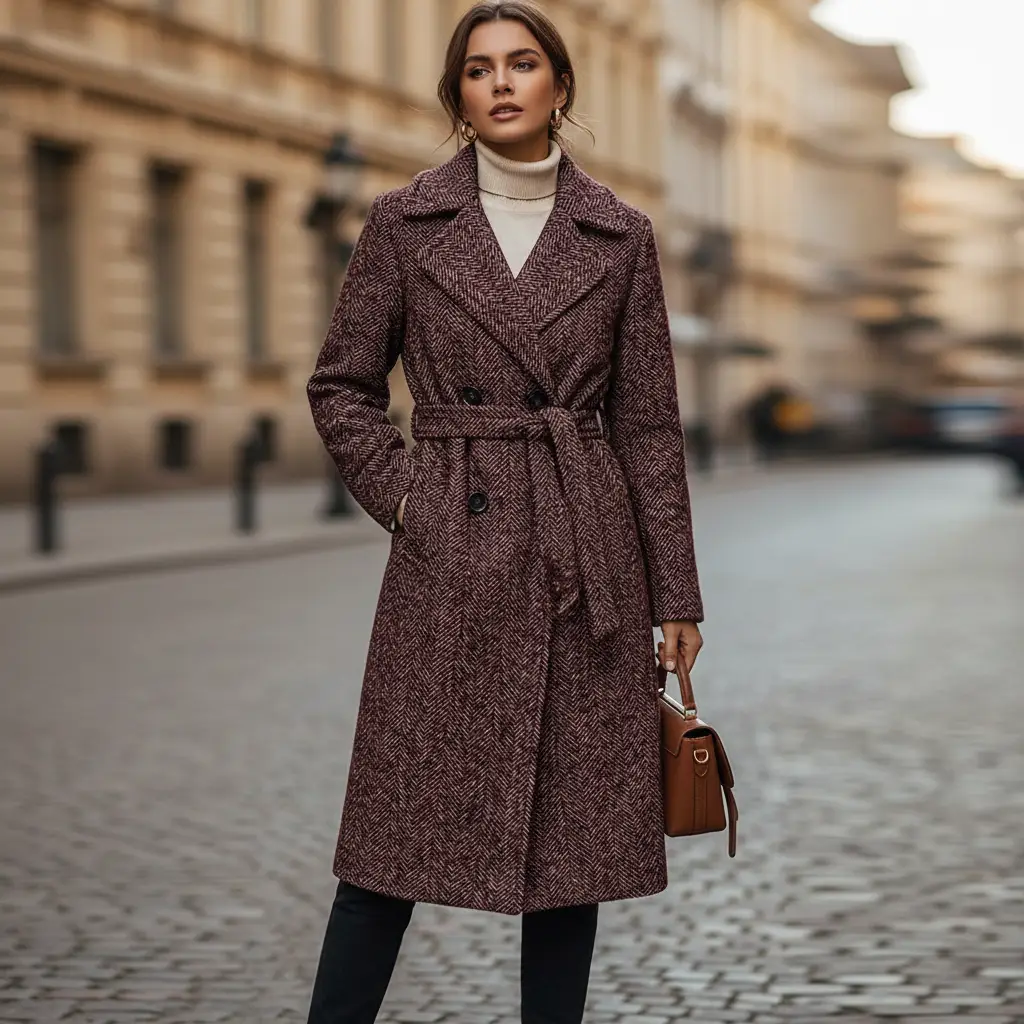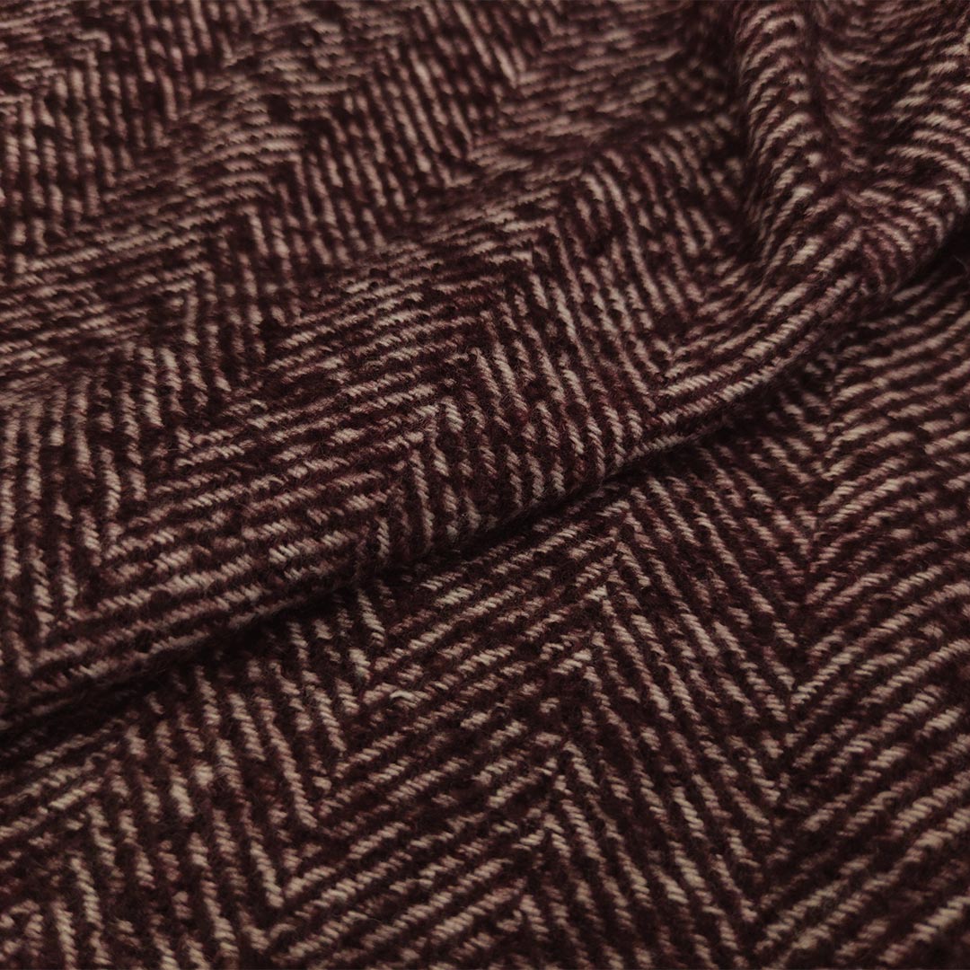 Tessuto per cappotto motivo spigato vinaccio – bianco