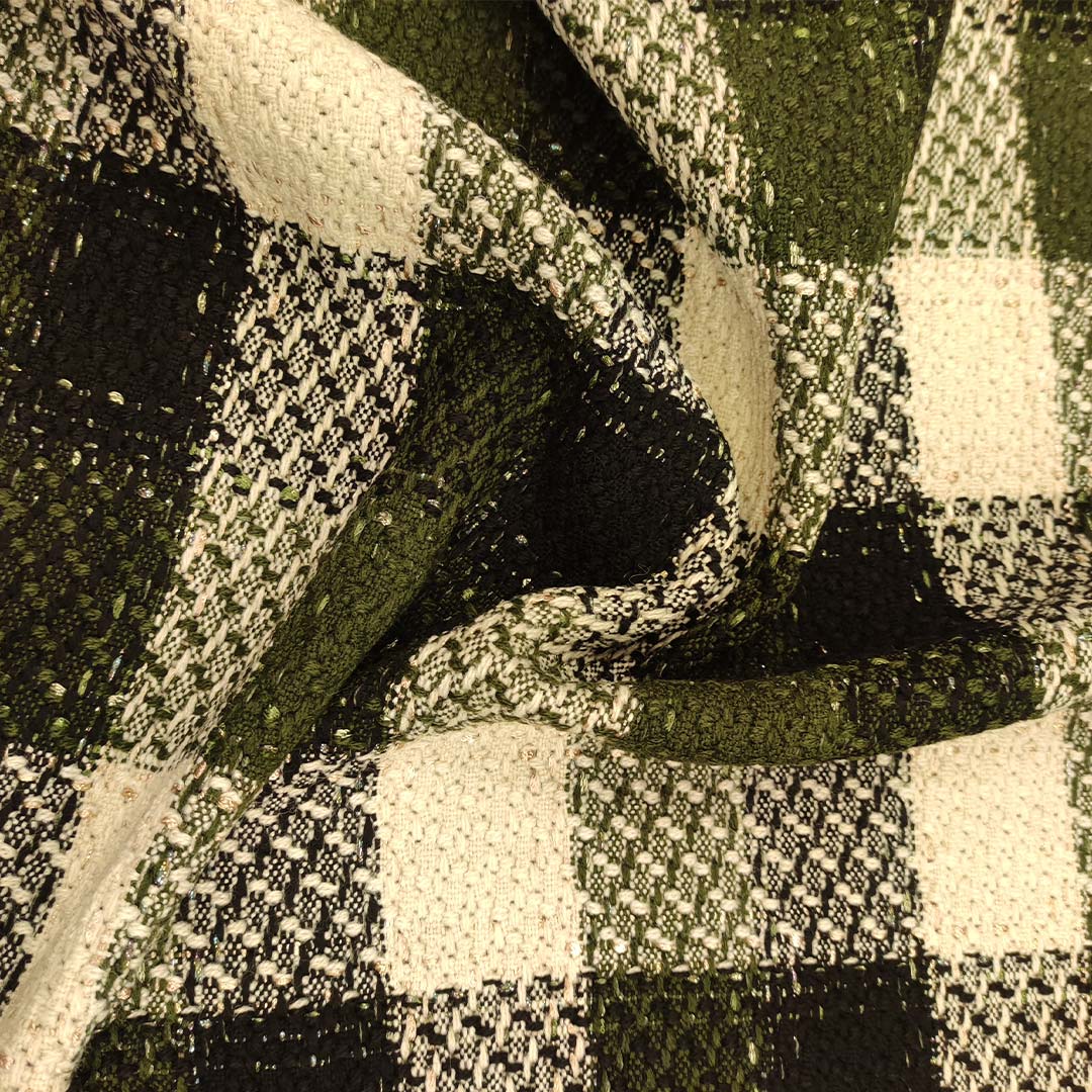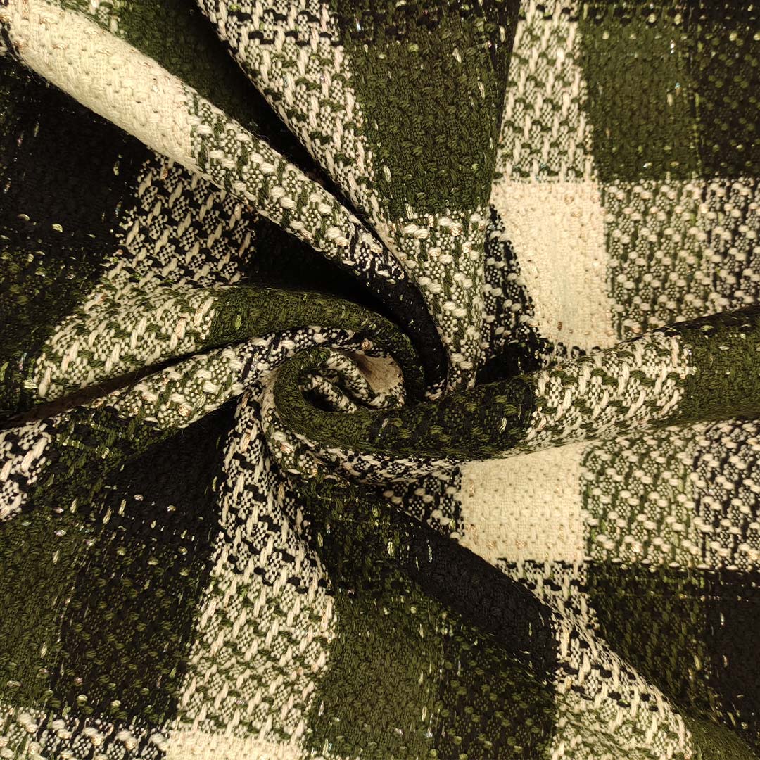 Tessuto per cappotto motivo tweed lurex nero – verde -panna – oro