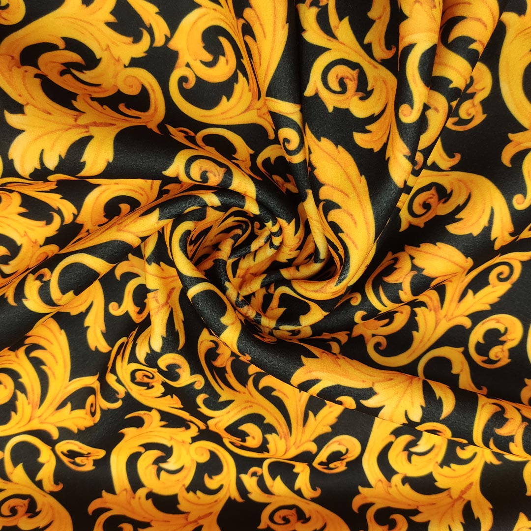 Tessuto per cappotto Panno a fantasia motivo floreale barocco nero – giallo