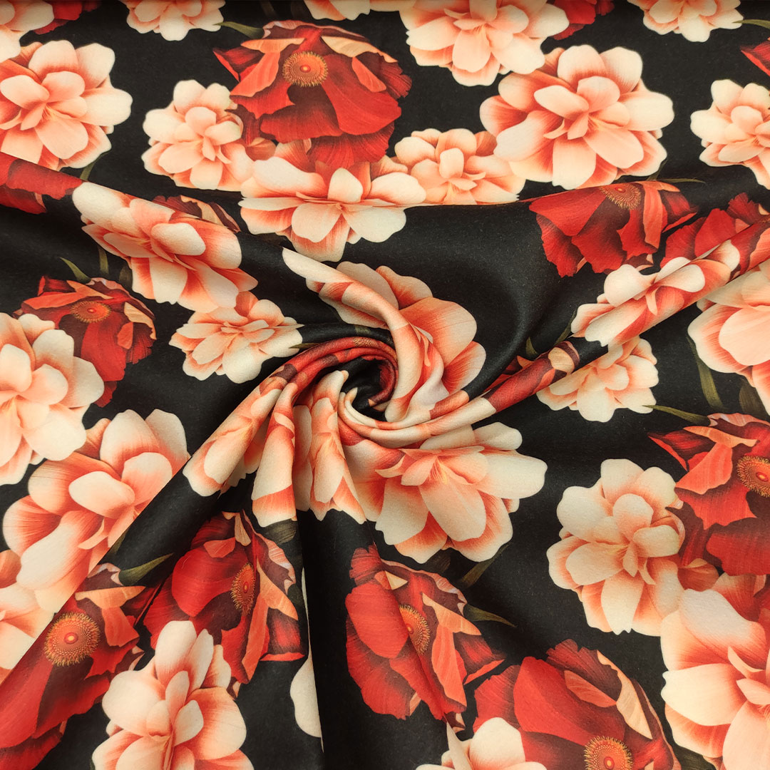 Tessuto per cappotto Panno a fantasia motivo floreale nero – rosso