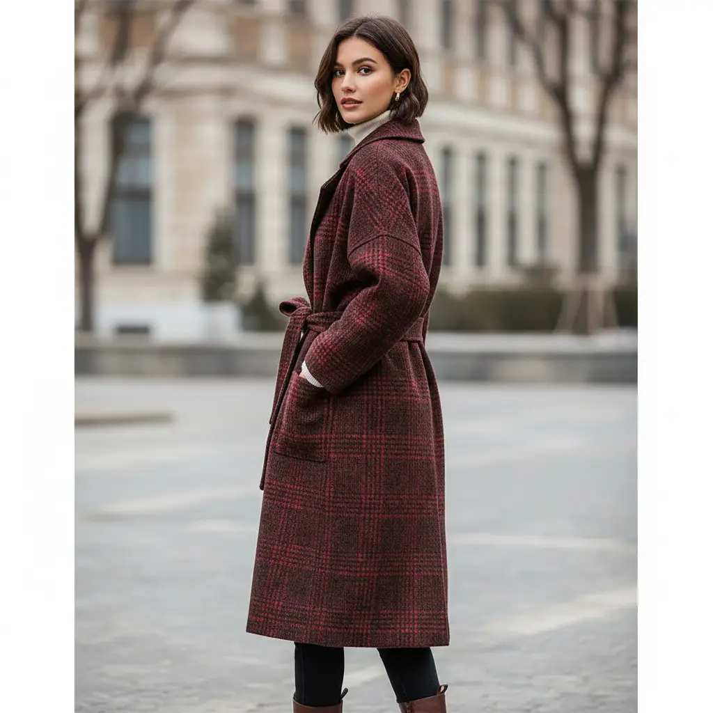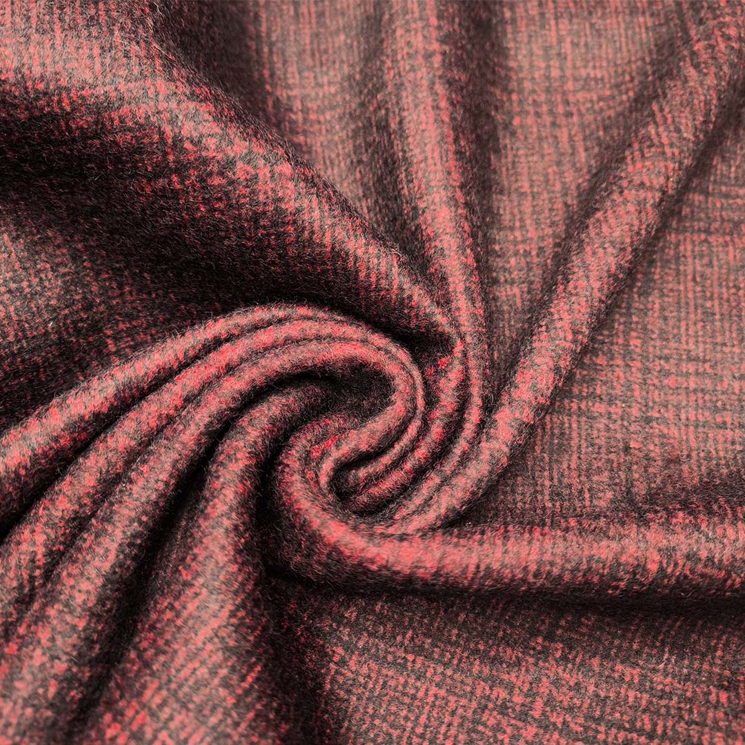 Tessuto per cappotto panno a maglia motivo quadri rosso – nero