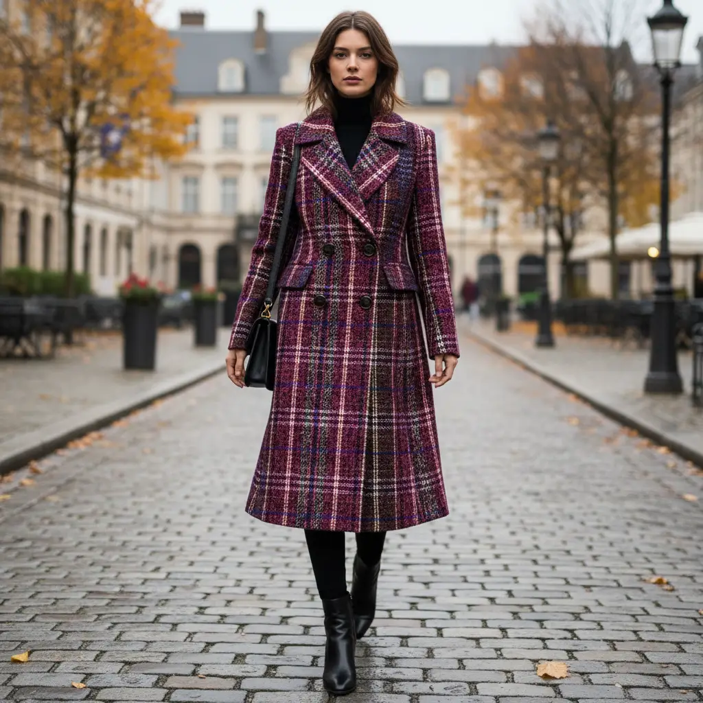 Tessuto per cappotto pettinato mano lana motivo quadri fucsia – blu elettrico – marrone