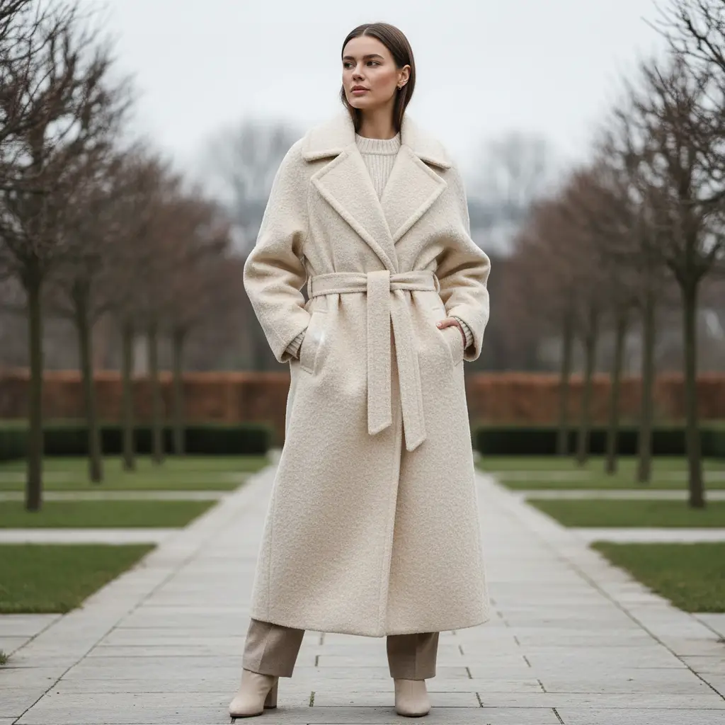 Tessuto per cappotto Bouclé dalla mano calda e morbida, ideale per realizzare capi da utilizzare nella stagione invernale come: cappe, mantelle, giacche e capispalla in genere.
