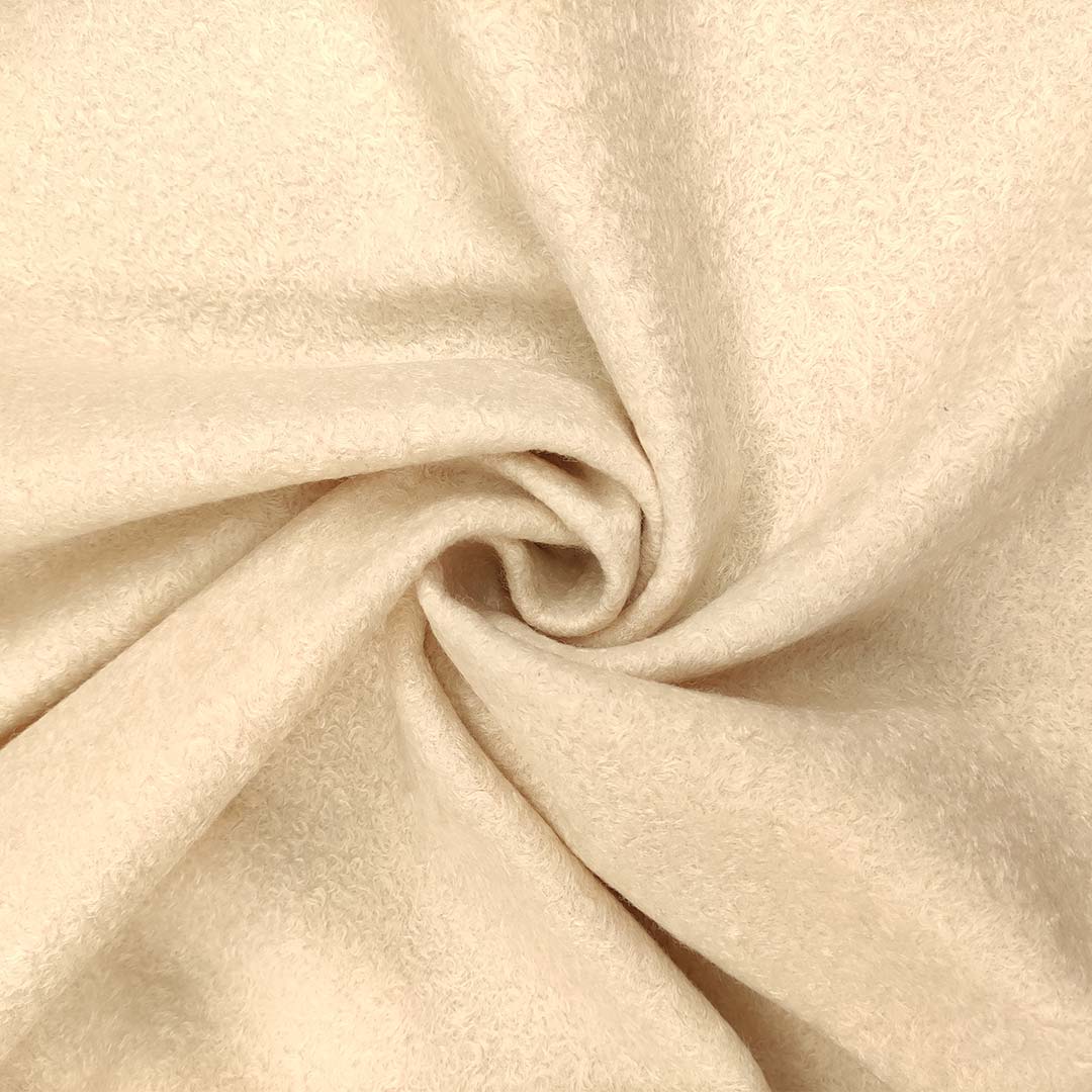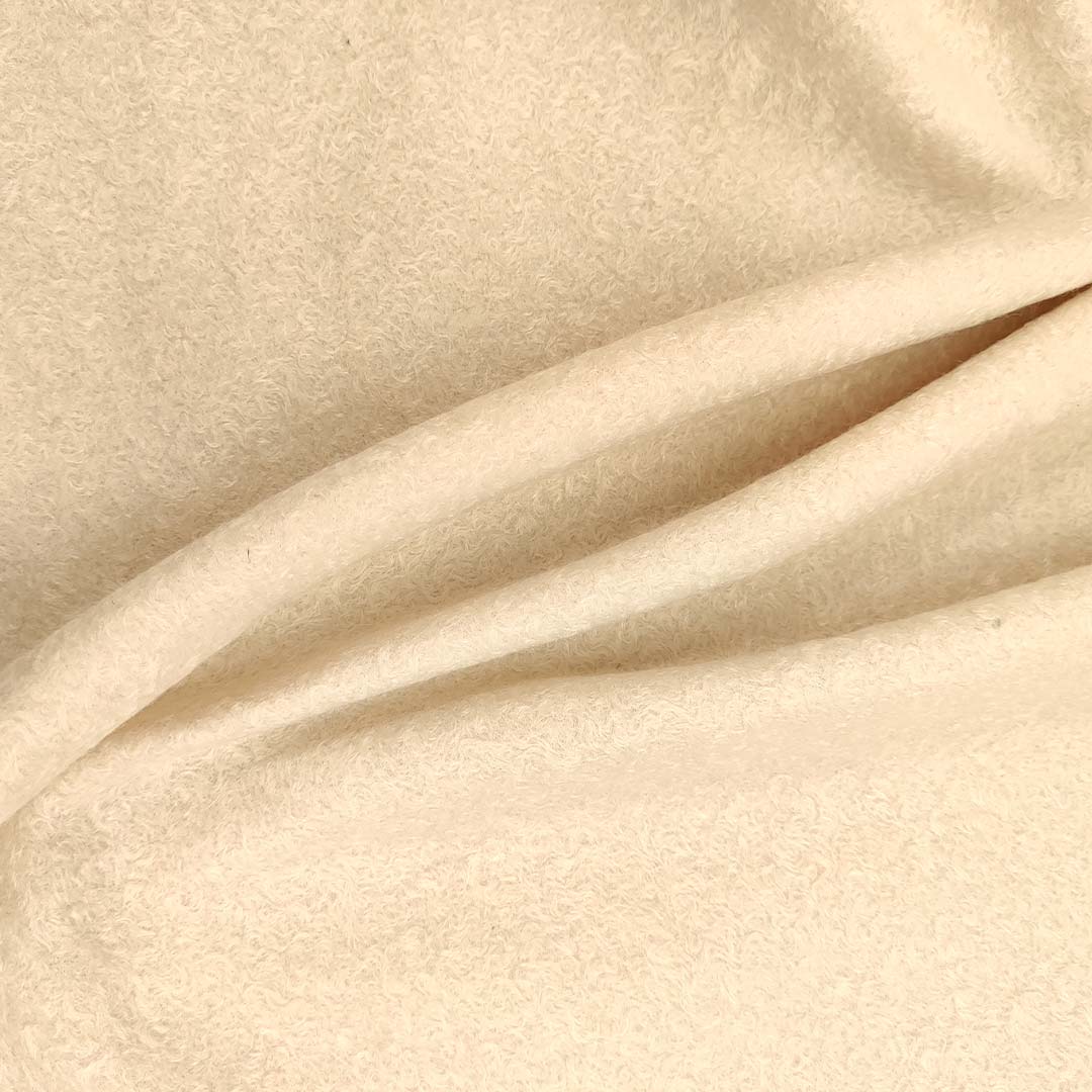 Tessuto per cappotto Bouclè schiacciato tinta unita panna
