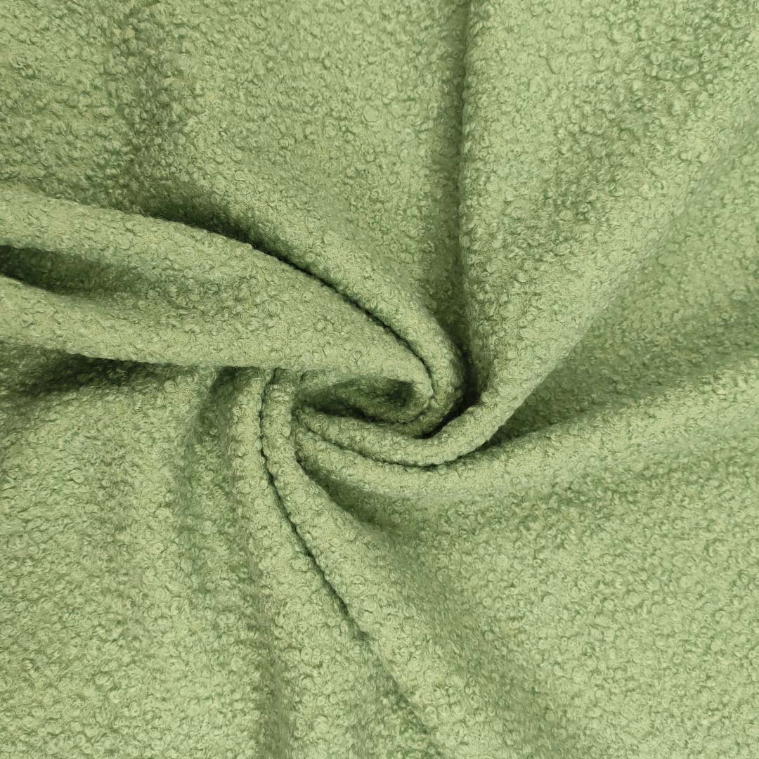 Tessuto per cappotto Bouclè tinta unita verde salvia