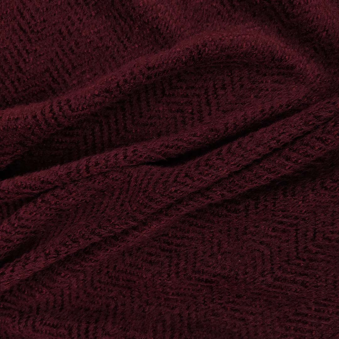 Tessuto per cappotto mano mohair motivo spigato tinta unita bordeaux