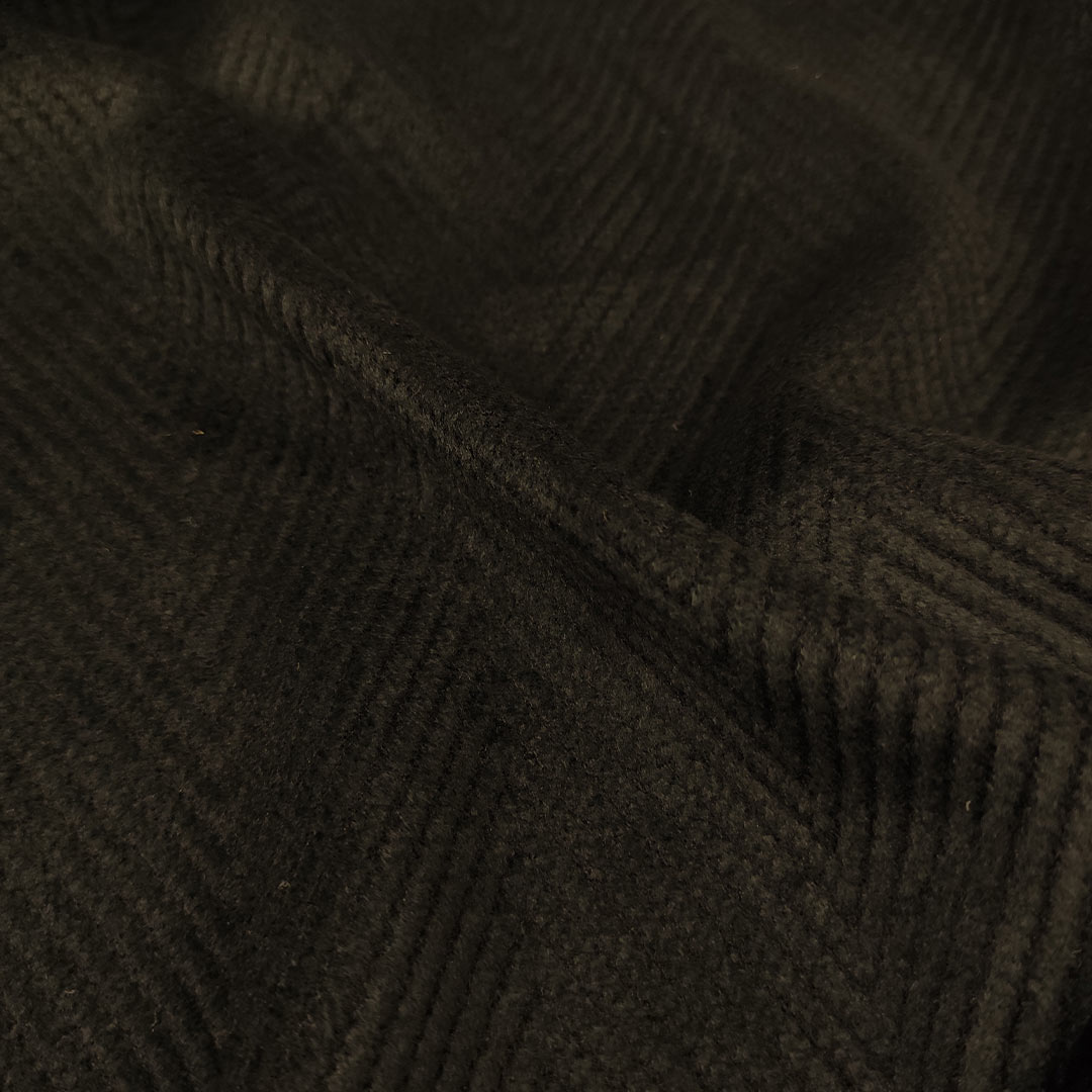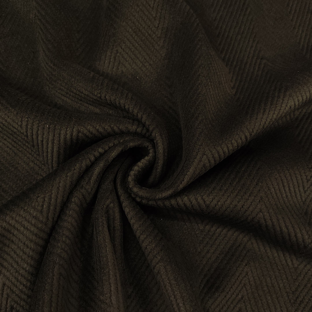 Tessuto per cappotto motivo spigato in tinta unita nero