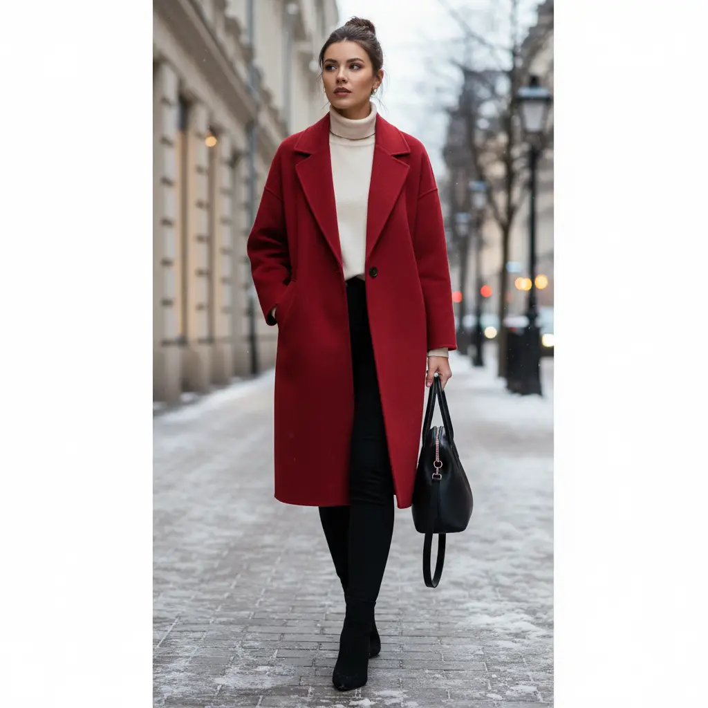 Tessuto per cappotto Panno a maglia tinta unita rosso
