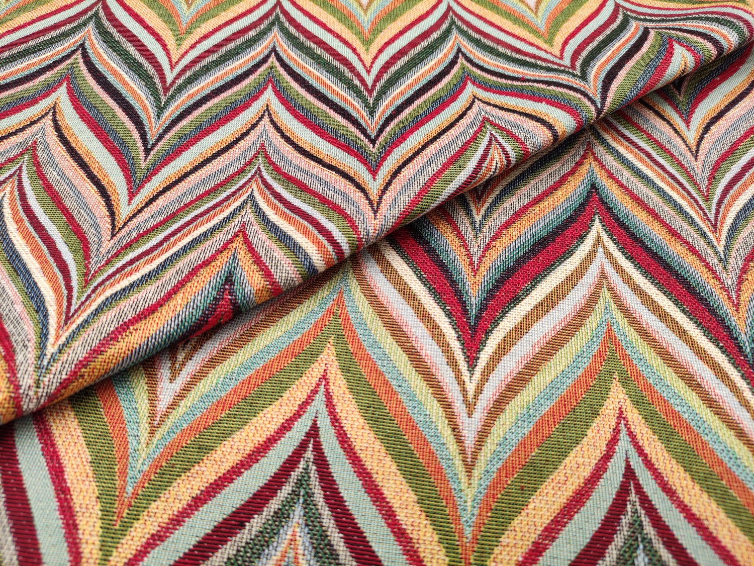 Tessuto Gobelin a fantasia dalla mano resistente e sostenuta, si presta alla creazione di complementi d’arredo colorati e vivaci come: runner, cuscini, copri tavolo e rivestimenti di divani e poltrone, inoltre è particolarmente utilizzato per realizzare borse.