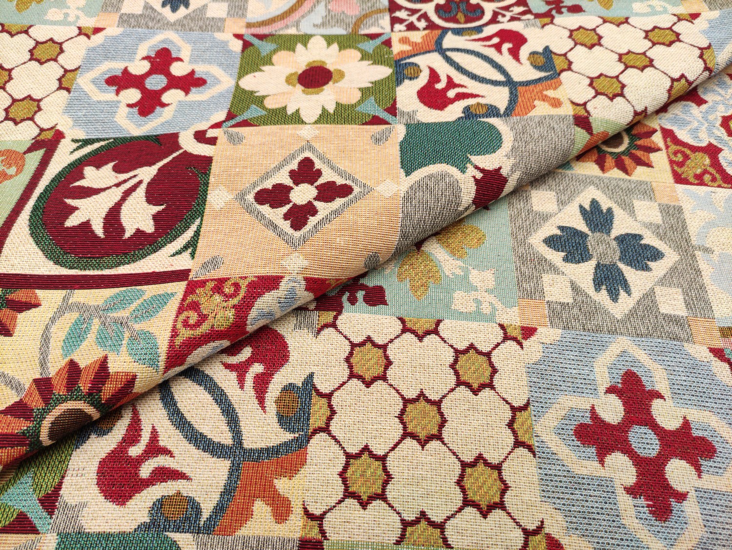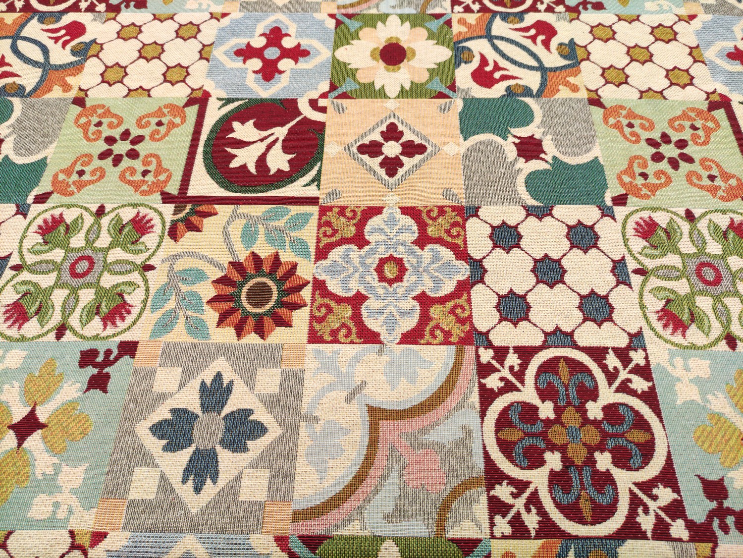 Tessuto Gobelin a fantasia dalla mano resistente e sostenuta, si presta alla creazione di complementi d’arredo colorati e vivaci come: runner, cuscini, copri tavolo e rivestimenti di divani e poltrone, inoltre è particolarmente utilizzato per realizzare borse.