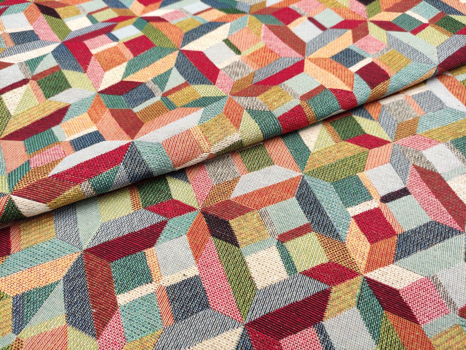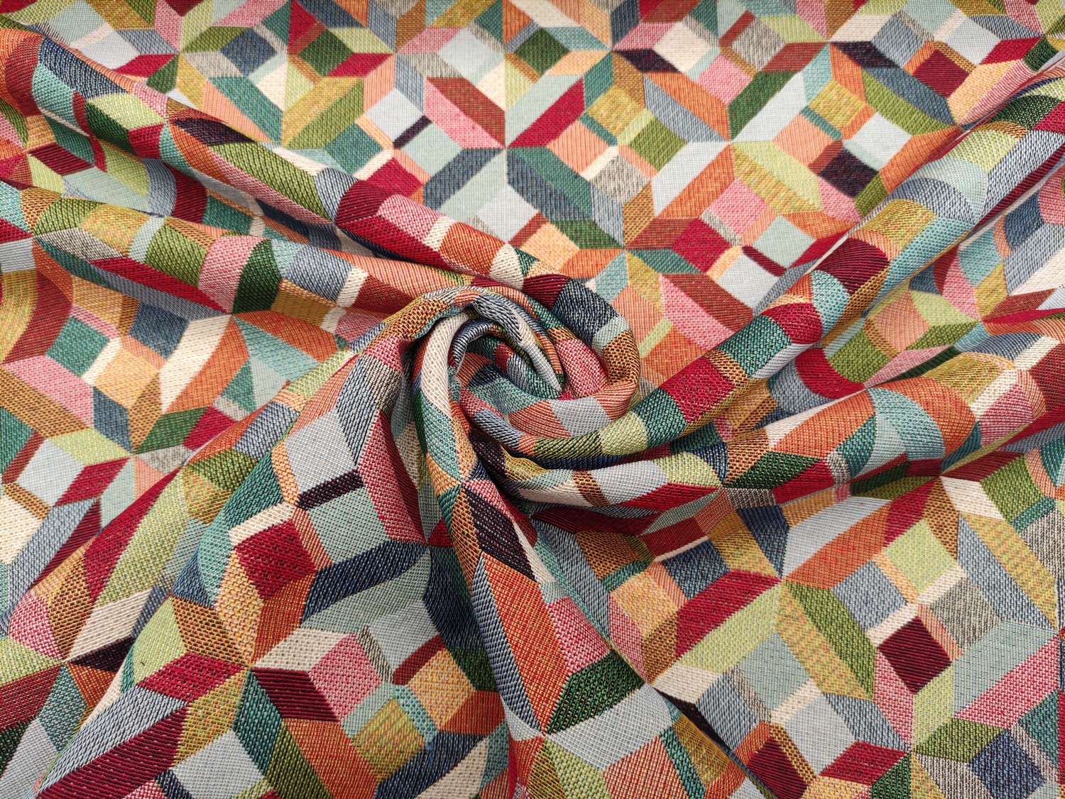 Tessuto Gobelin a fantasia dalla mano resistente e sostenuta, si presta alla creazione di complementi d’arredo colorati e vivaci come: runner, cuscini, copri tavolo e rivestimenti di divani e poltrone, inoltre è particolarmente utilizzato per realizzare borse.