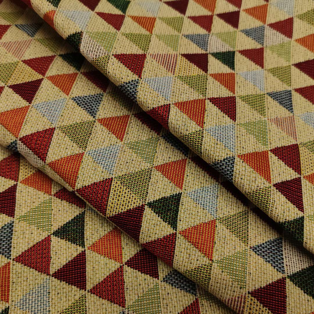Tessuto Gobelin a fantasia motivo geometrico rosso – arancione – bordeaux
