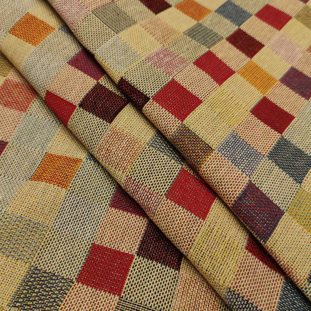 Tessuto Gobelin a fantasia motivo geometrico rosso – beige – arancione