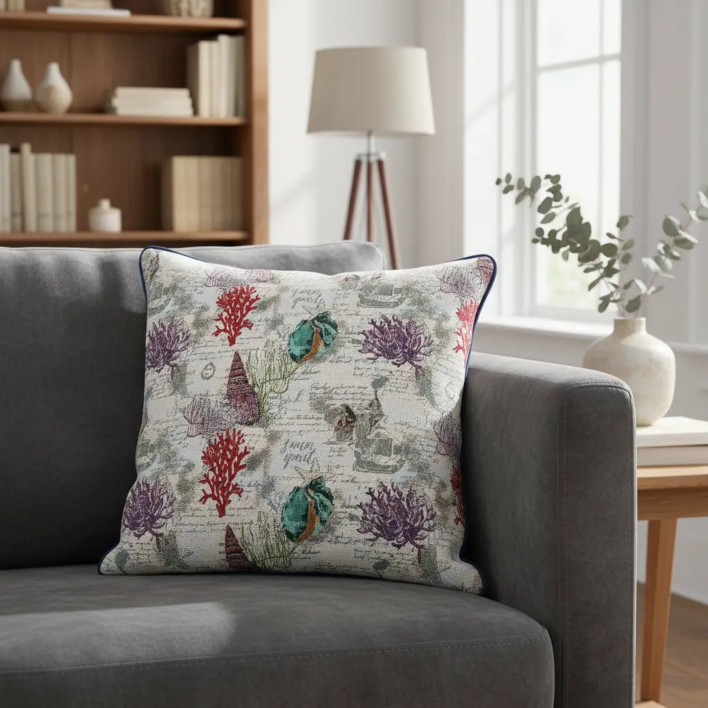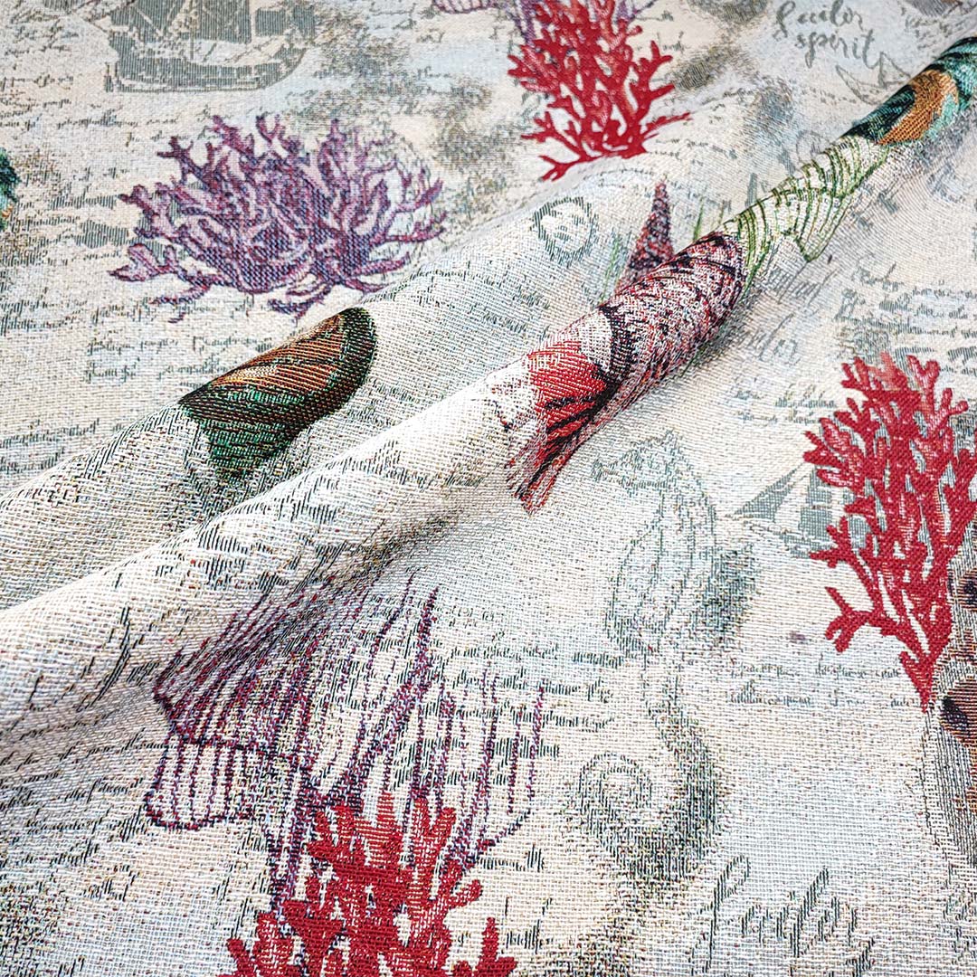 Tessuto Gobelin a fantasia motivo marino beige – rosso – verde