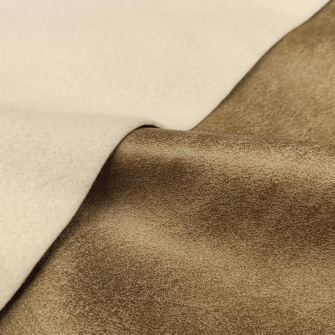 Tessuto per rivestimenti Nabuk idrorepellente effetto invecchiato scamosciato tinta unita tortora
