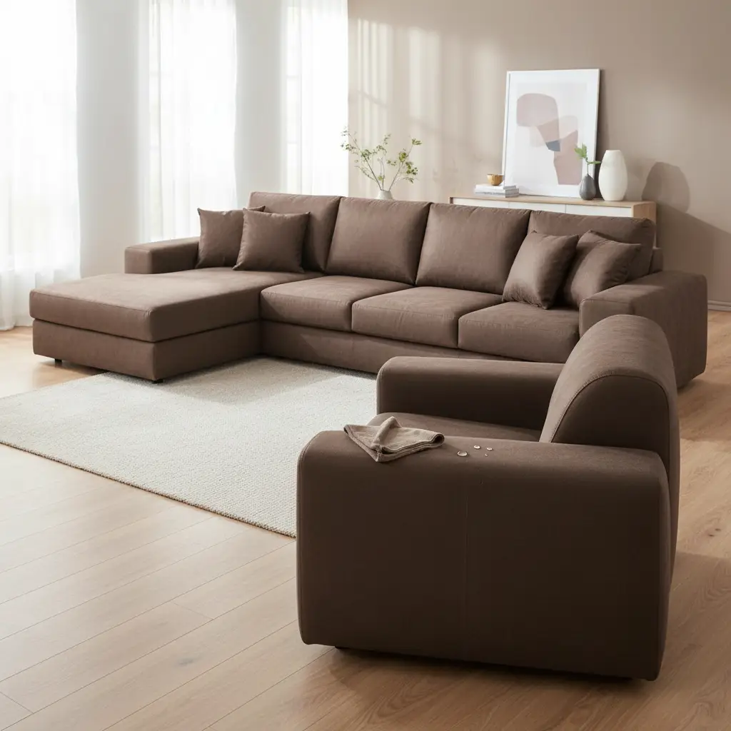 Tessuto per rivestimenti Nabuk idrorepellente effetto scamosciato tinta unita cioccolato