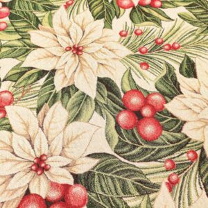 €7,00Il prezzo originale era: €7,00.€5,00Il prezzo attuale è: €5,00. al metroTessuto per arredo Gobelin natalizio lurex motivo stella di natale beige – oro – rosso – verde