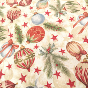 €7,00Il prezzo originale era: €7,00.€5,00Il prezzo attuale è: €5,00. al metroTessuto Misto Cotone decorativo natalizio motivo sfere beige – carta da zucchero – bordeaux