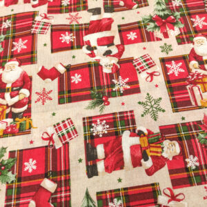 €7,00Il prezzo originale era: €7,00.€5,00Il prezzo attuale è: €5,00. al metroTessuto Misto Cotone decorativo natalizio motivo babbo natale beige – rosso – verde