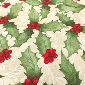 €7,00Il prezzo originale era: €7,00.€5,00Il prezzo attuale è: €5,00. al metroTessuto Misto Cotone decorativo natalizio motivo vischio beige – rosso – verde