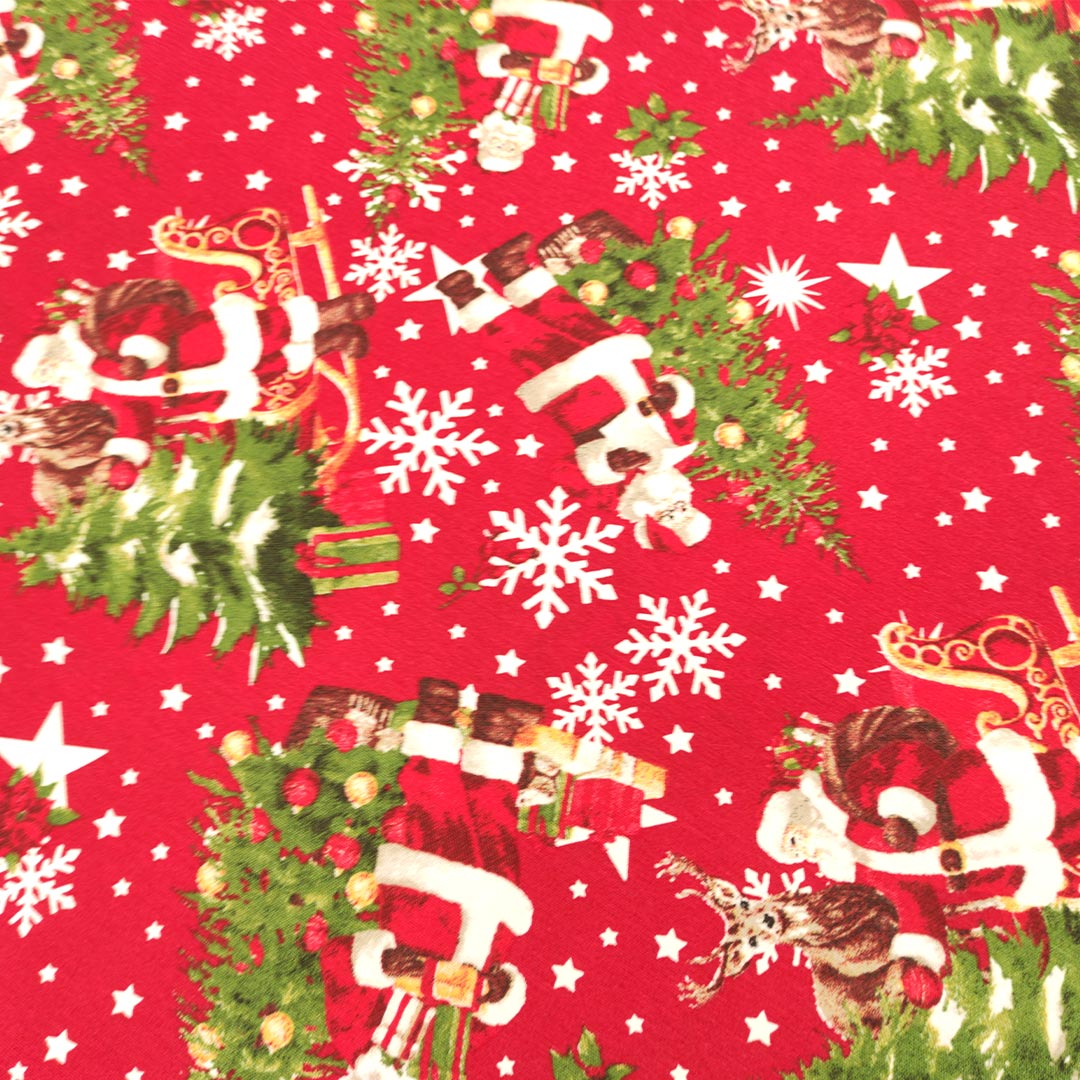 Tessuto Misto Cotone decorativo natalizio motivo babbo natale rosso – verde – bianco
