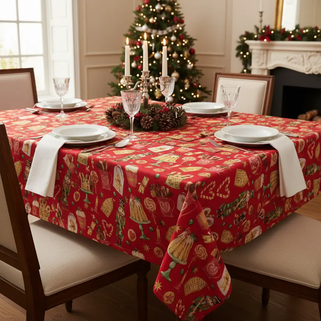 Tessuto Misto Cotone per arredo natalizio a fantasia ideale per arredare la vostra casa in occasione delle festività natalizie, si stira facilmente e resiste ai lavaggi, si presta perfettamente alla creazione di: copritavoli, tovaglie, tendaggi, rivestimenti per divani, sedie, cuscini e poltrone inoltre può essere utilizzato per il cucito creativo.